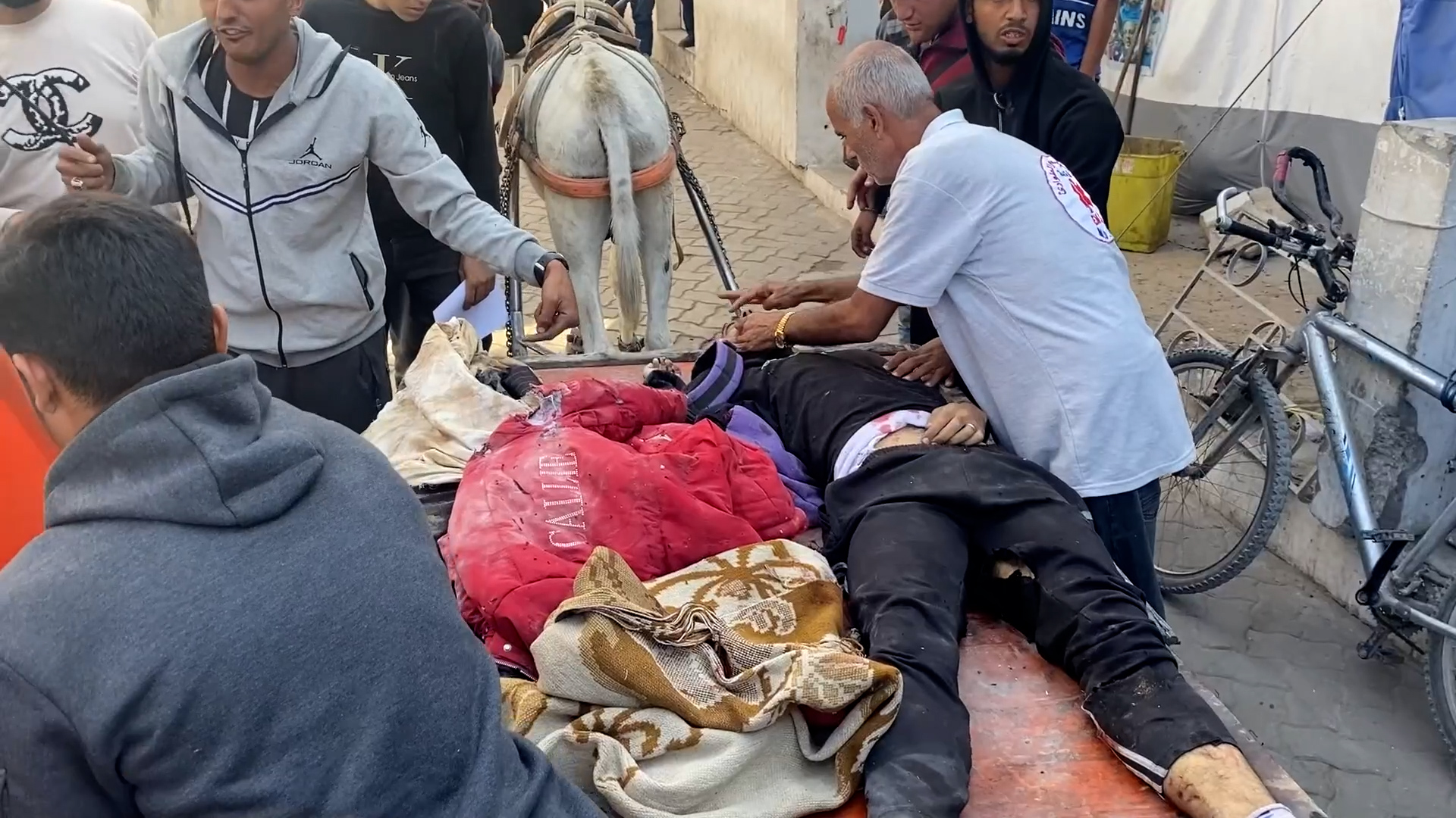 وصول شهداء ومصابين إلى المستشفى بدير البلح