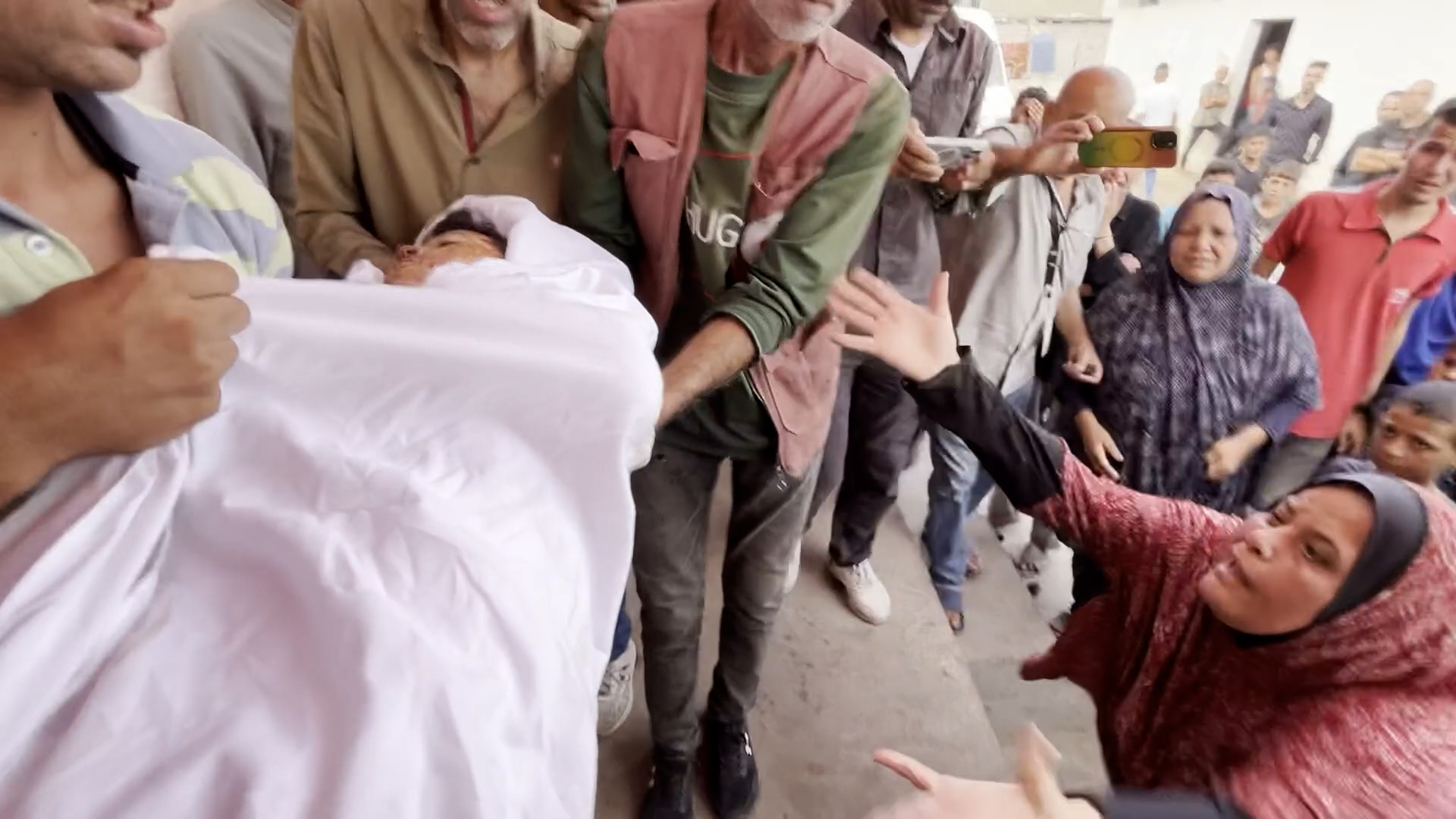 نقل طفل استشهد بقصف في مخيم الشاطئ
