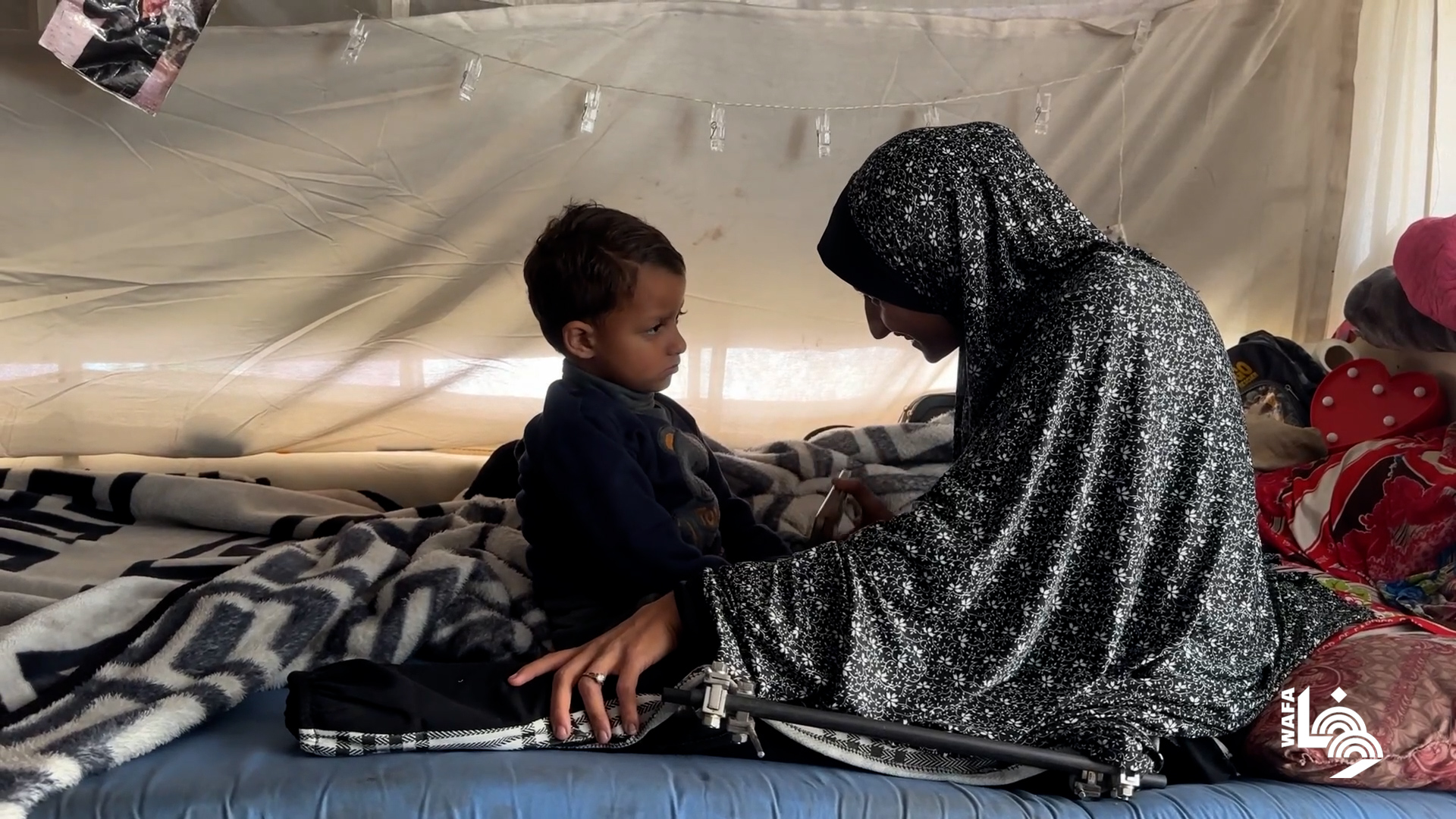 شروق تفقد زوجها وساقيها وتعيش مع طفلها في خيمة شرق غزة