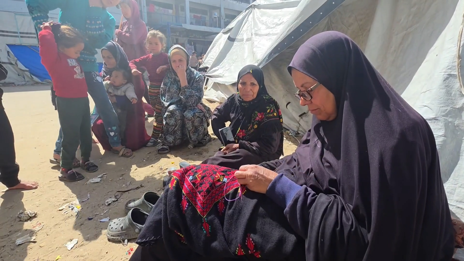 سهيلة عيسى تستأنف التطريز في خيمة النزوح