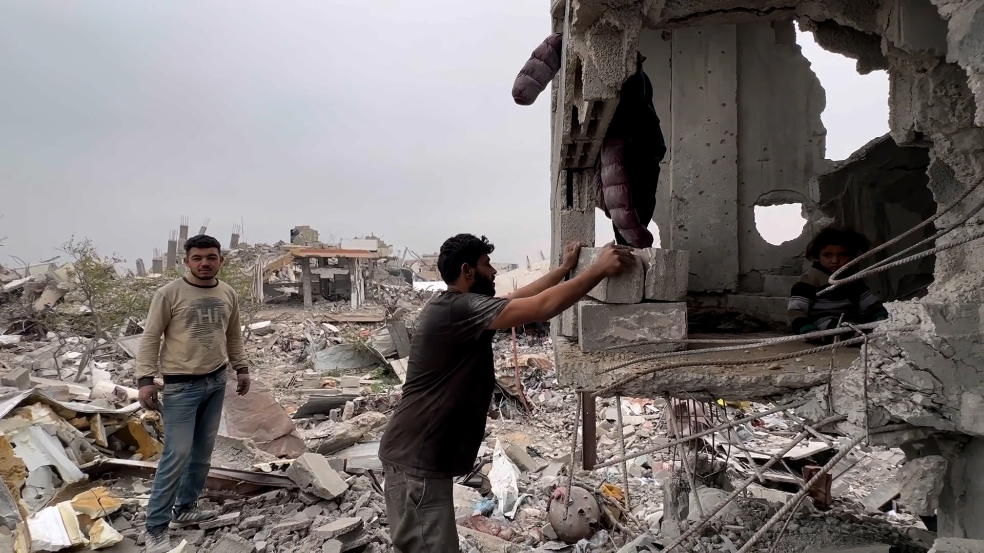 محسن يرمّم ما تبقى من بيته المدمر في جباليا