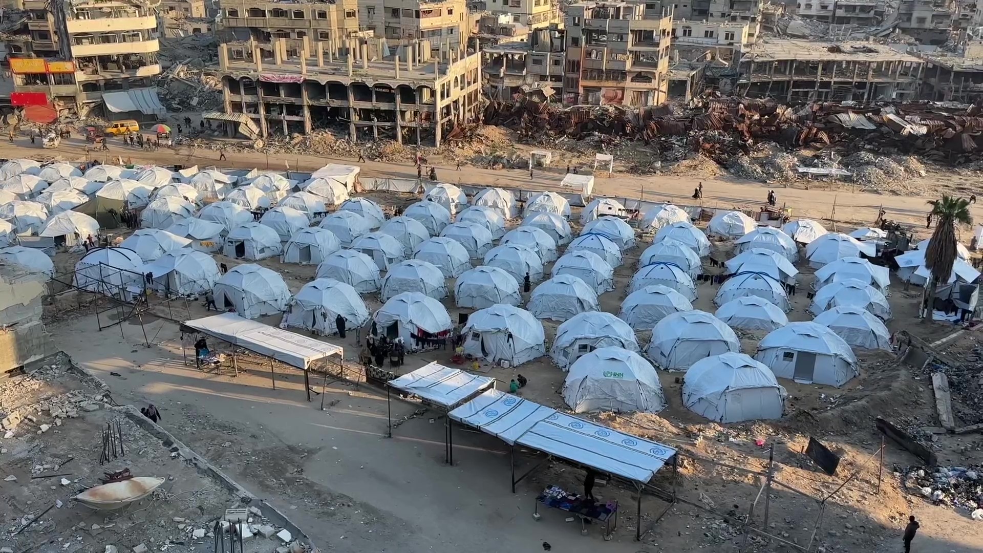 مخيمات للعائدين لحي الشجاعية بغزة