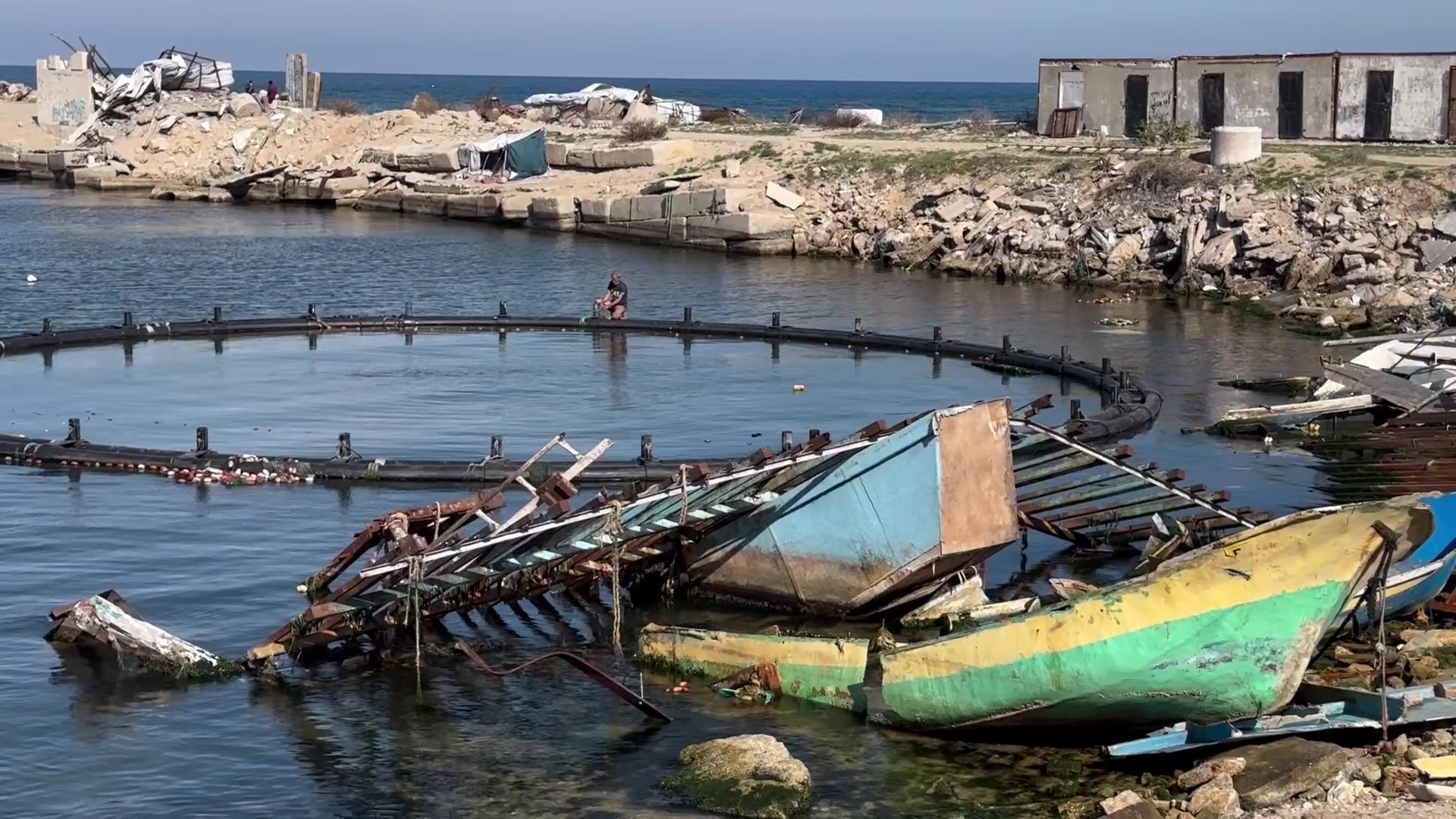 صيادون يحاولون ترميم معدات الصيد في غزة