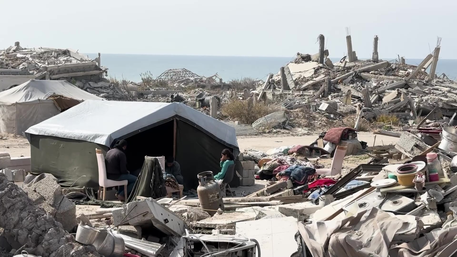 خيام على أنقاض البيوت المدمرة في غزة