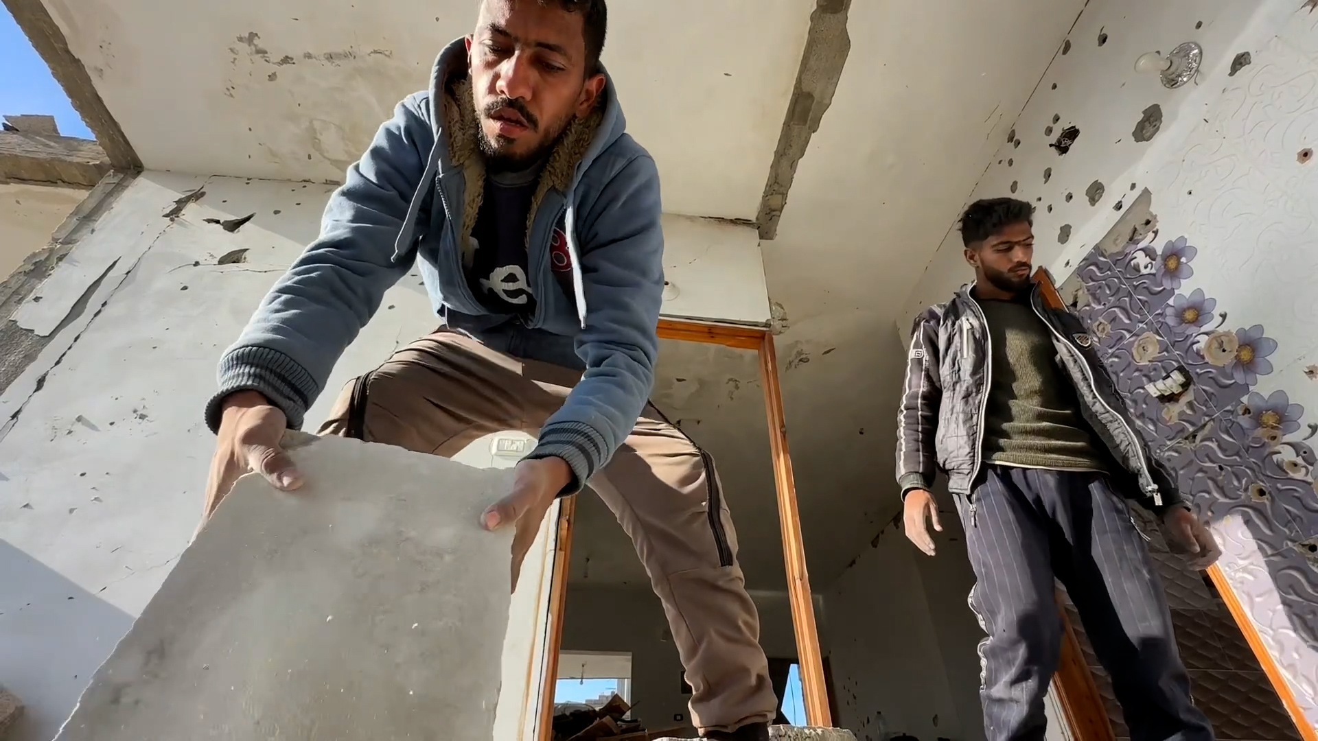 شقيقان من رفح يستصلحان منزلهما المدمّر للعيش فيه