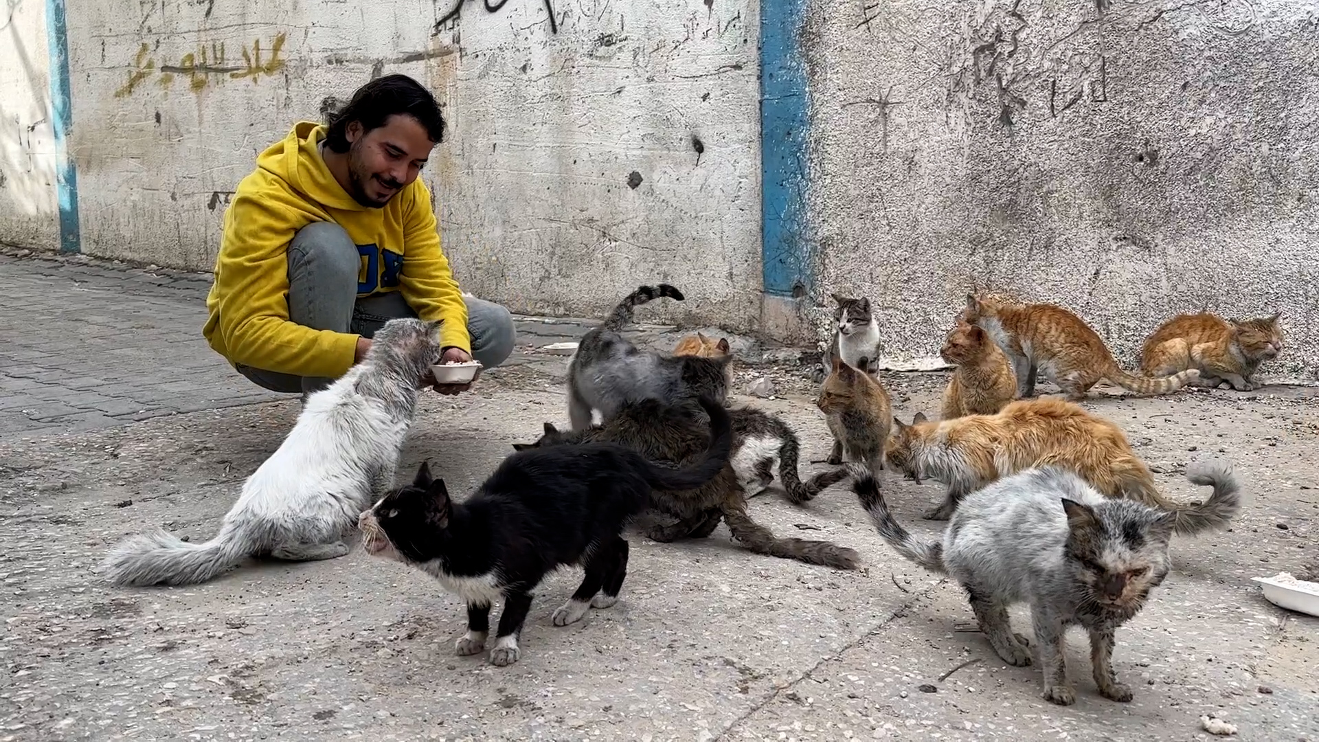 فضل نبهان يطعم القطط والكلاب في النصيرات