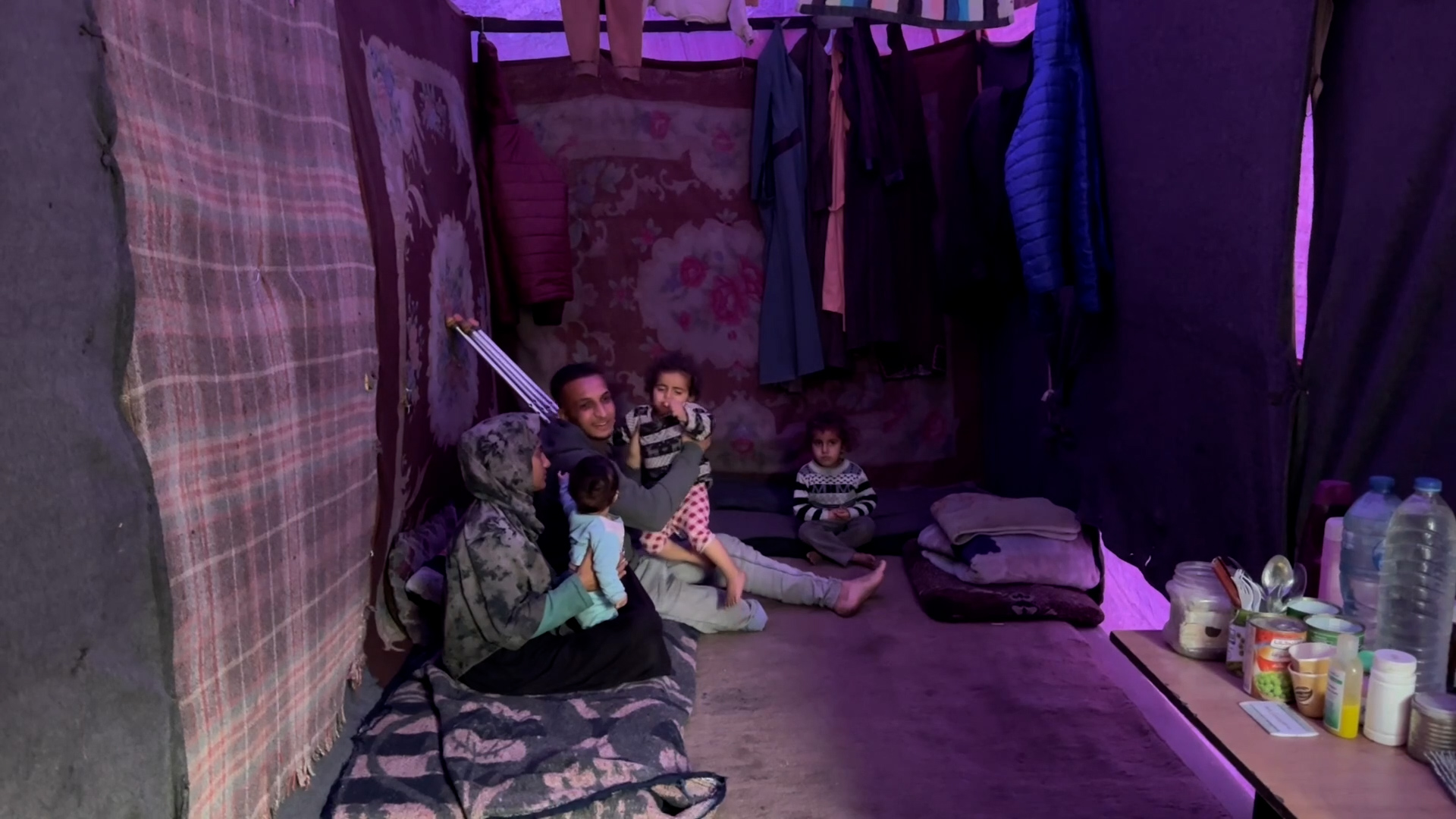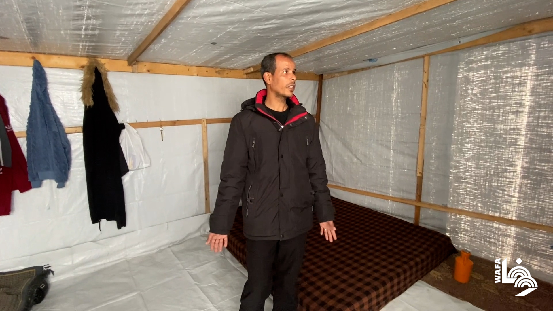 أبو شرخ يعيش وأطفاله في خيمة بعد بتر ساقه