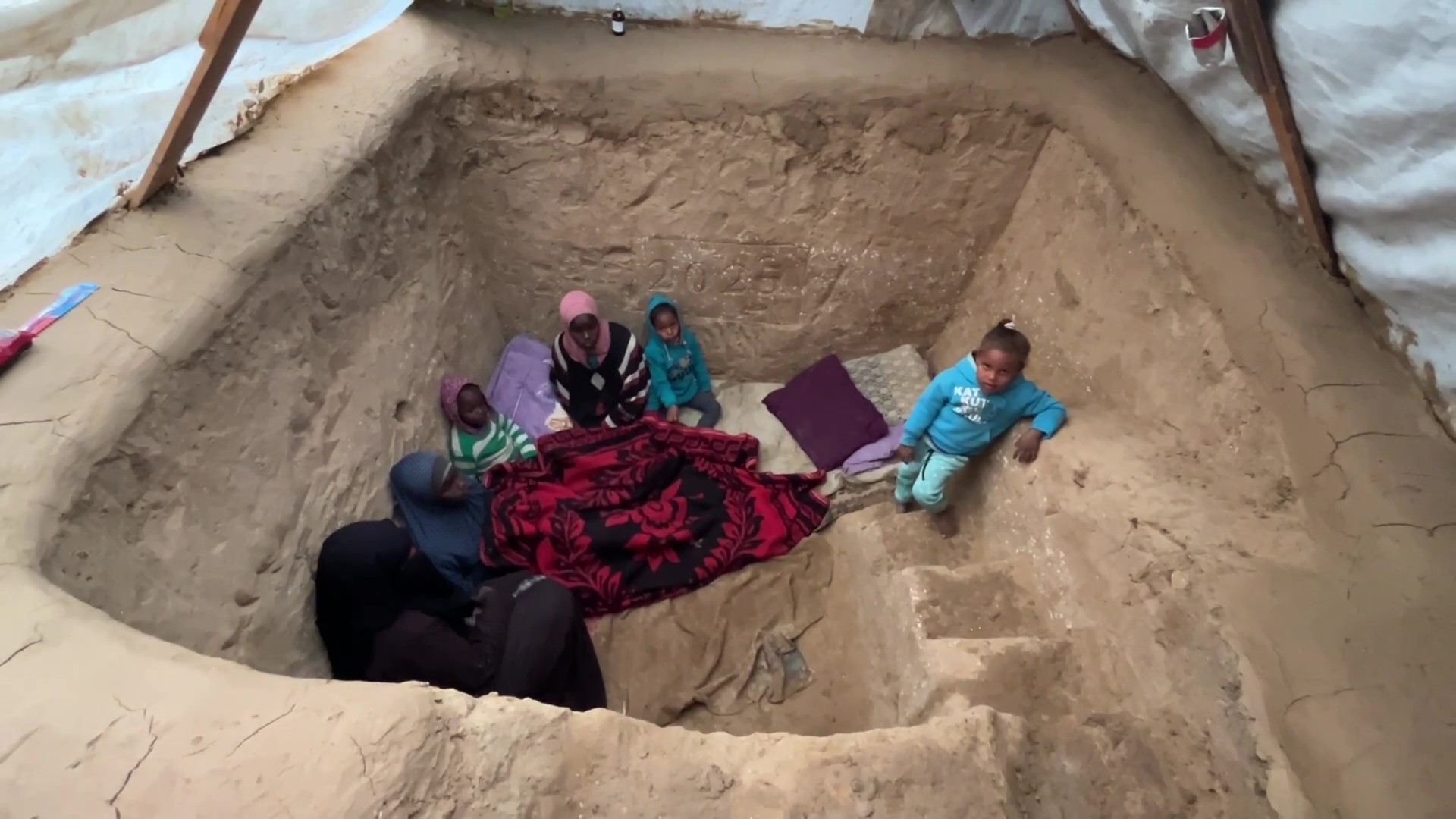 النازح عبيد يحفر الأرض لتوفير مأوى لأسرته
