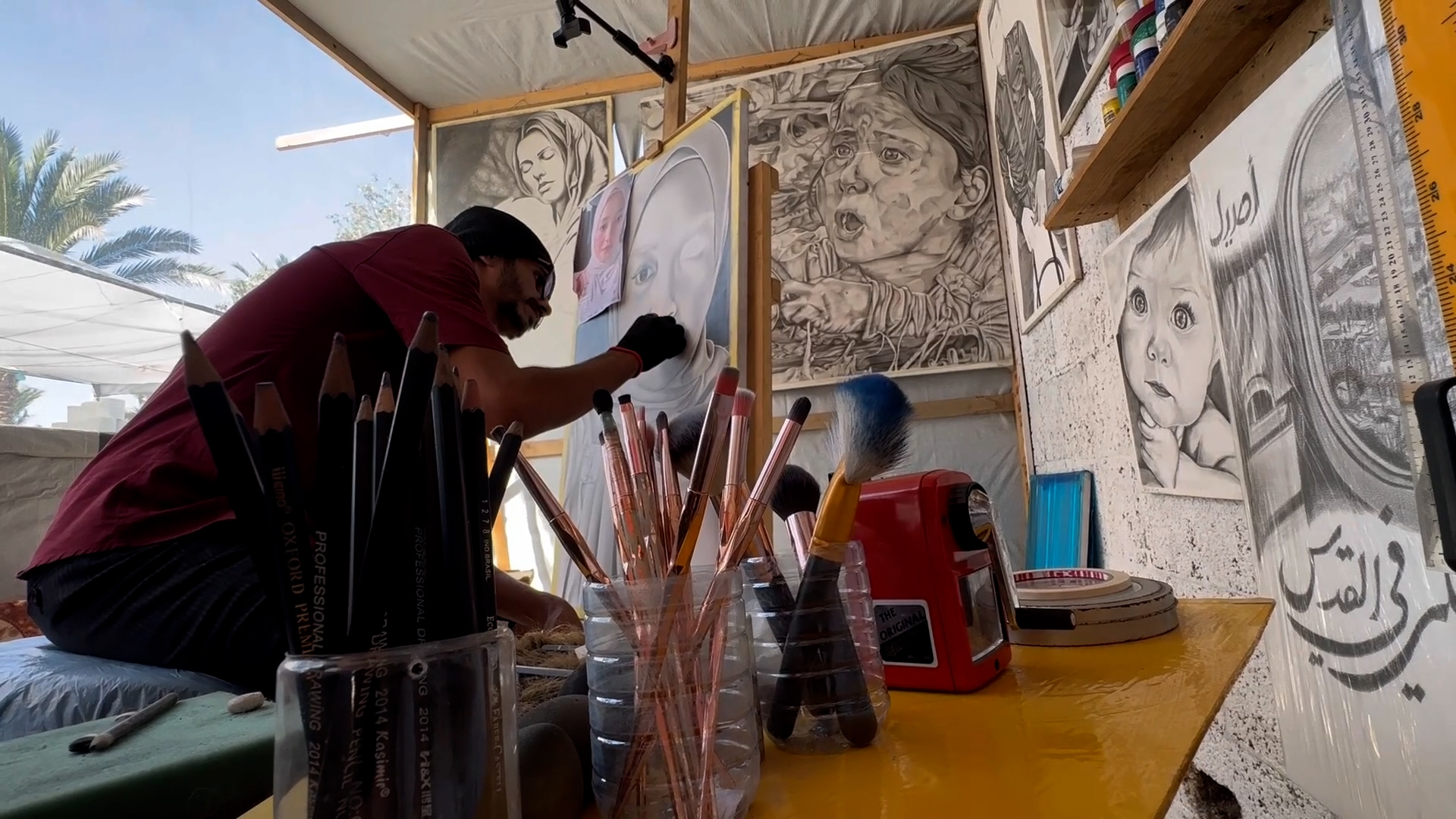 فنان أصم يحوّل خيمة النزوح إلى مرسم