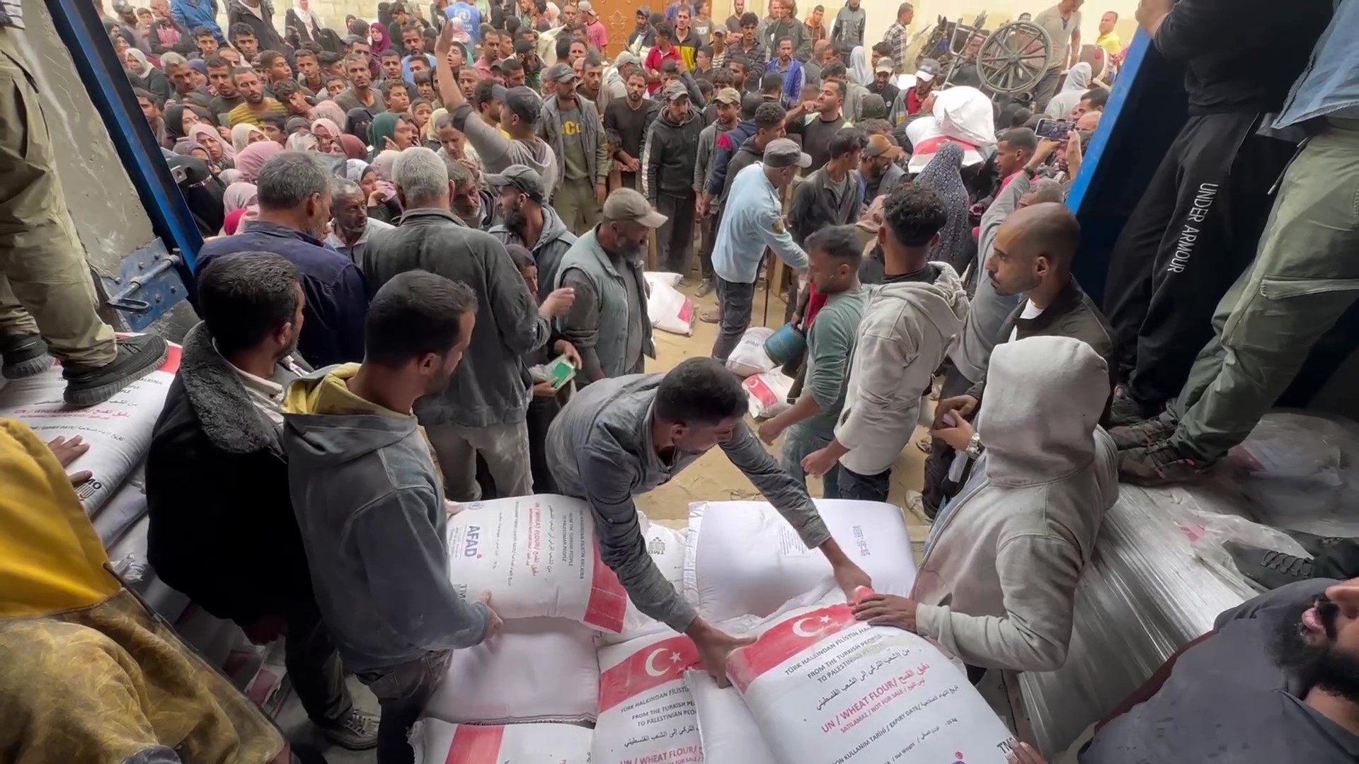 ازدحام للحصول على الطحين في دير البلح