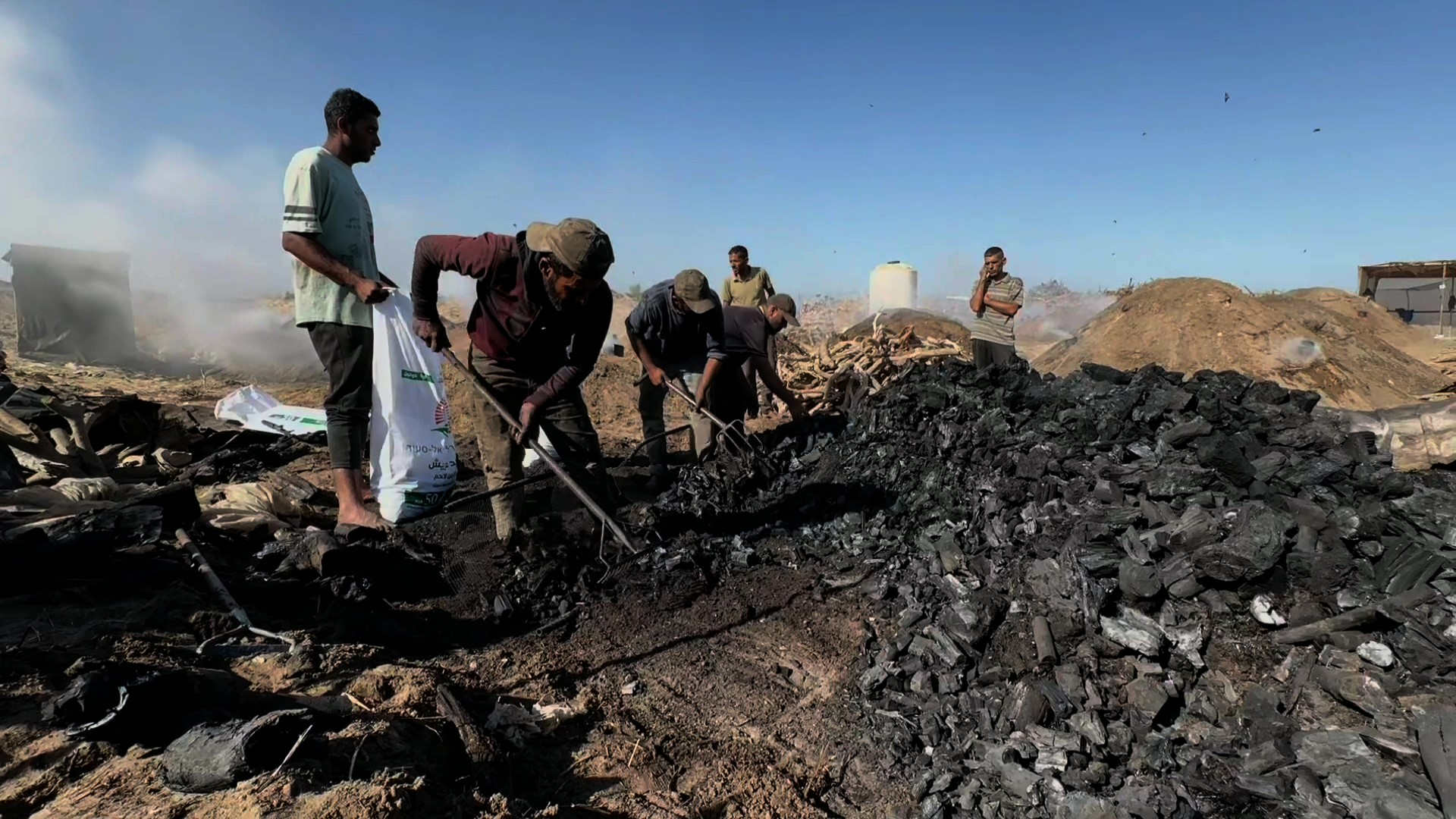 نازحون يعملون في الفحم جنوب قطاع غزة