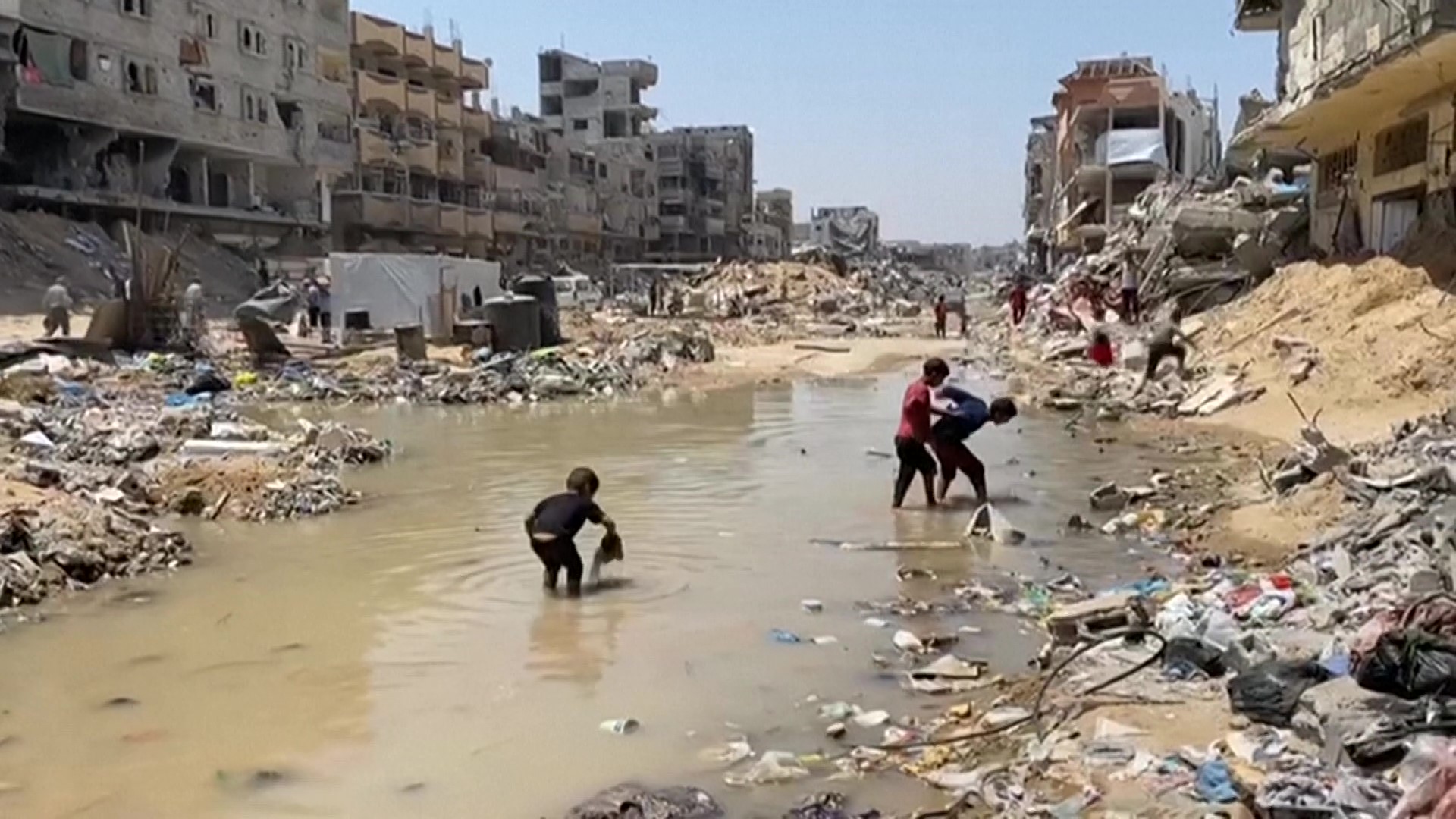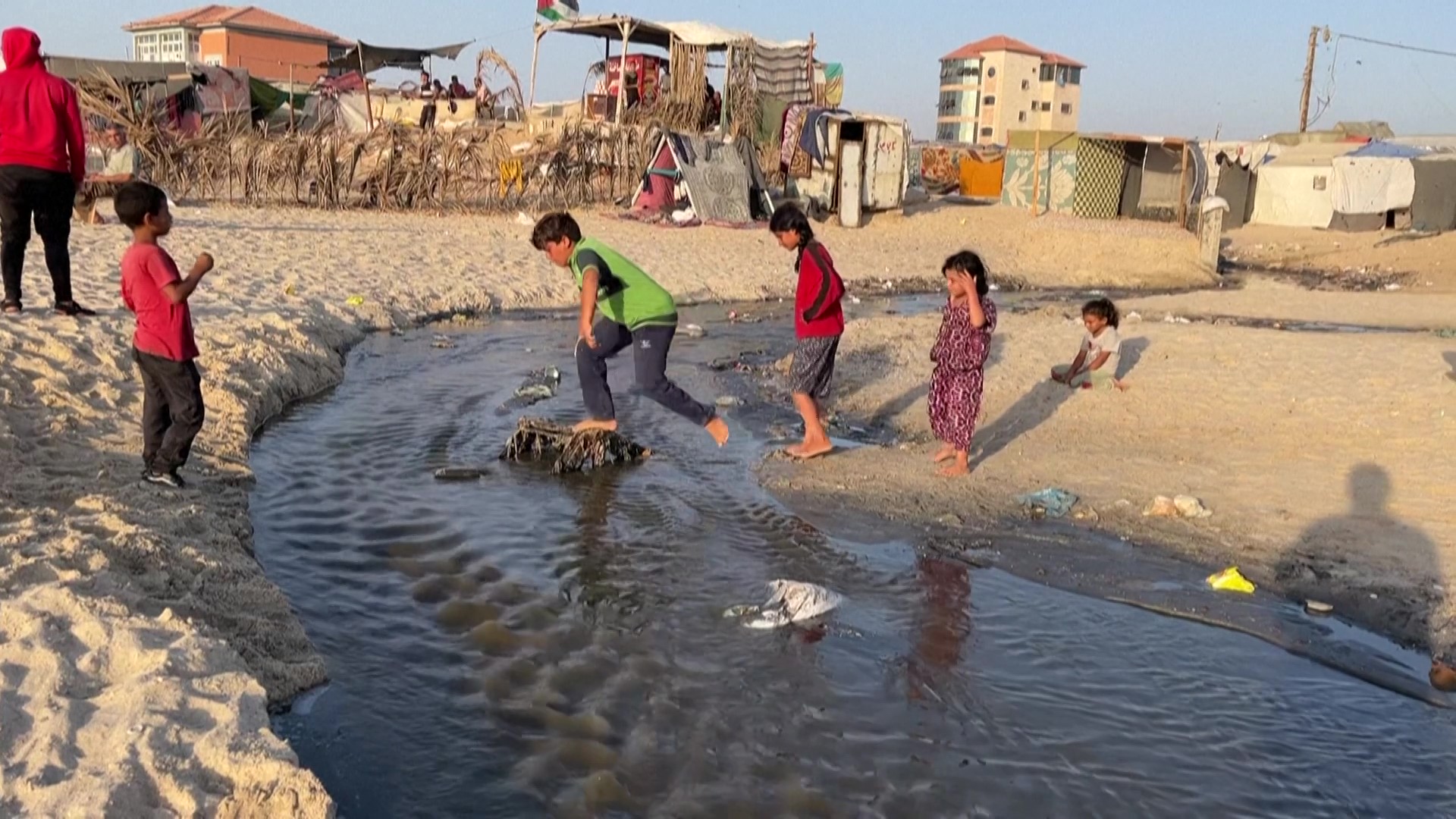 نازحون يفرّون من حرّ الخيام للبحر الملوّث
