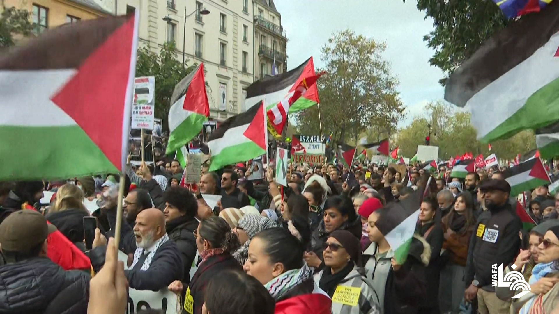 عشرات الآلاف في باريس يتضامنون مع فلسطين