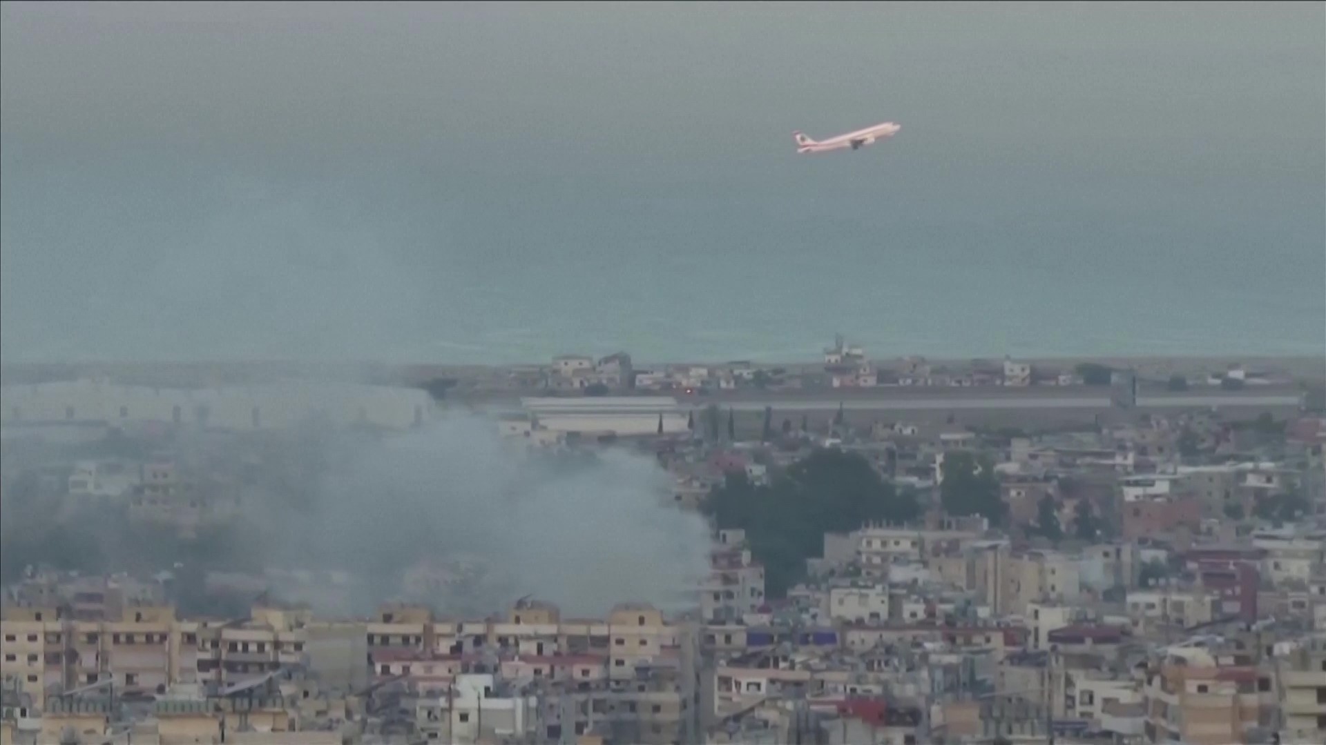 طائرات تقلع من مطار بيروت وسط دخان القصف