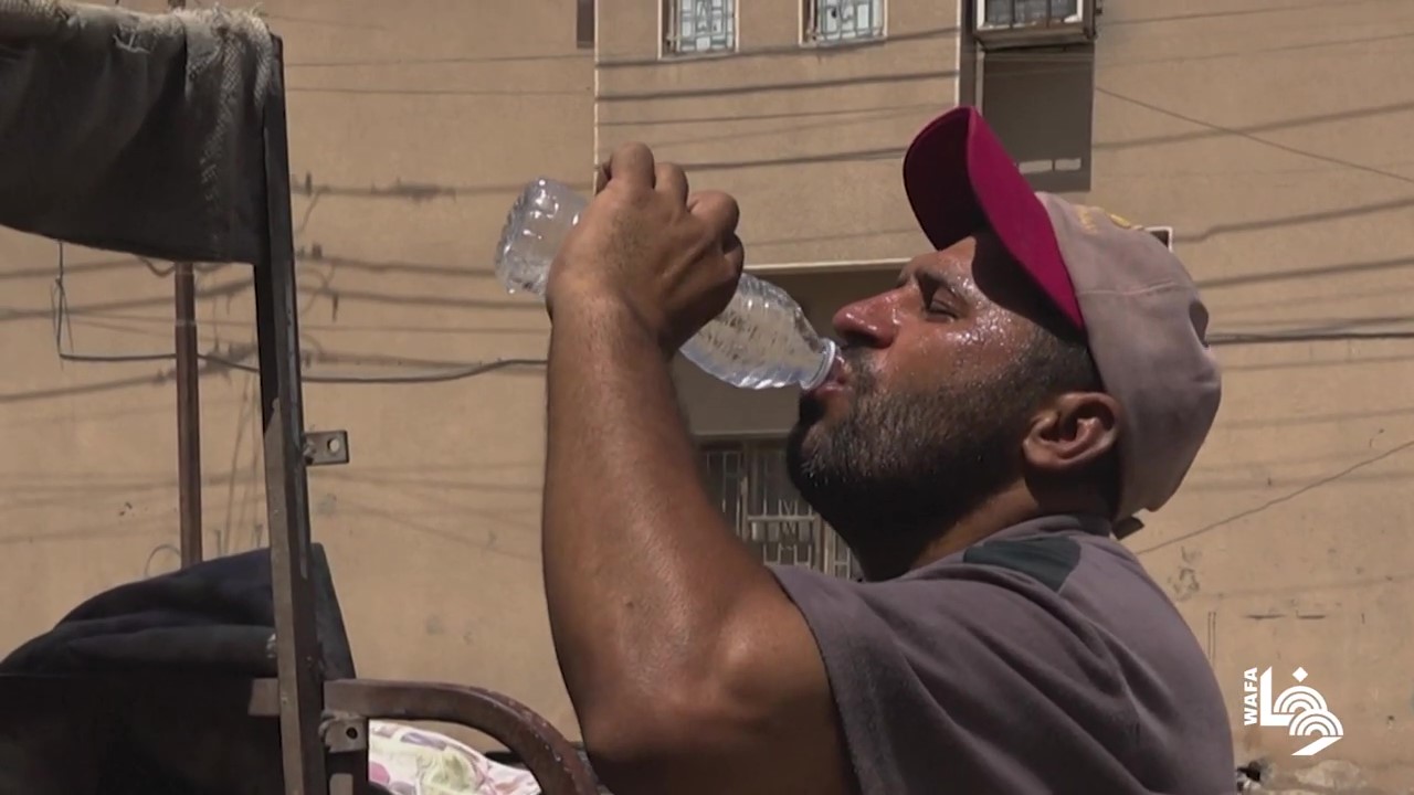 بائع الغاز يواجه حرّ العراق بالإكثار من شرب الماء
