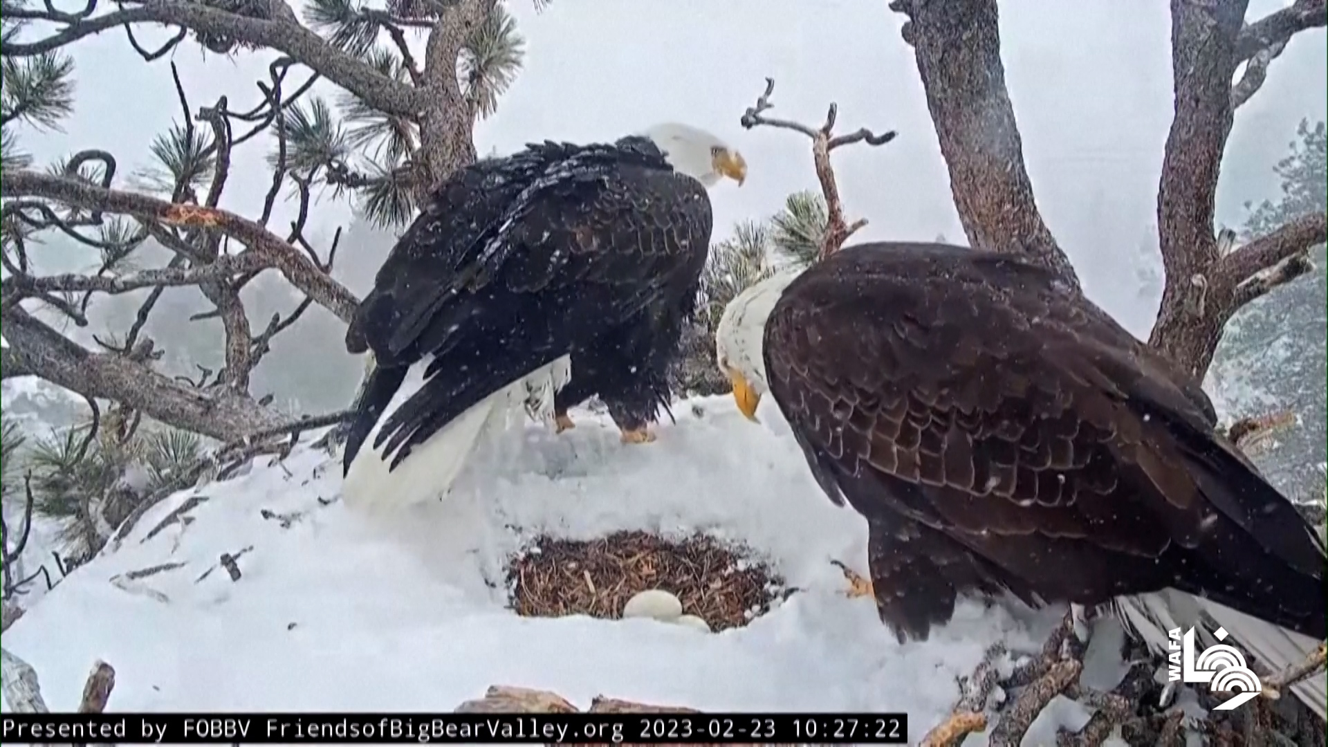 نسران يتبادلان احتضان البيض خلال عاصفة ثلجية