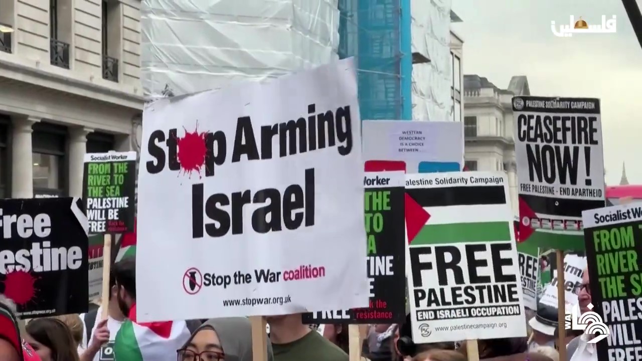 متظاهرون في لندن يطالبون بوقف العدوان على غزة