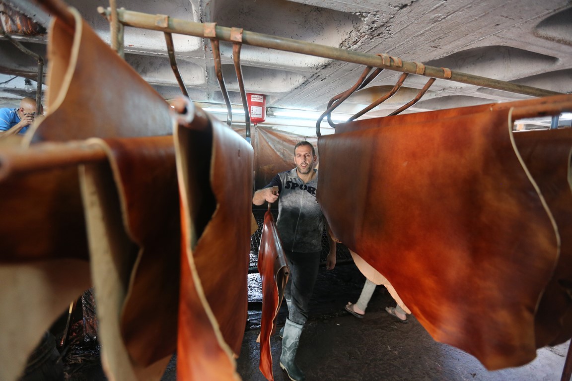 ينشغل حاتم الزعتري بتجهيز كمية من جلود الأبقار تمهيدا لدباغتها، فدباغة الجلود في مدينة الخليل مهنة متوارثة منذ أكثر من مئة عام، تحتكرها عائلة الزعتري التي تمتلك ثلاث عشرة مدبغة.