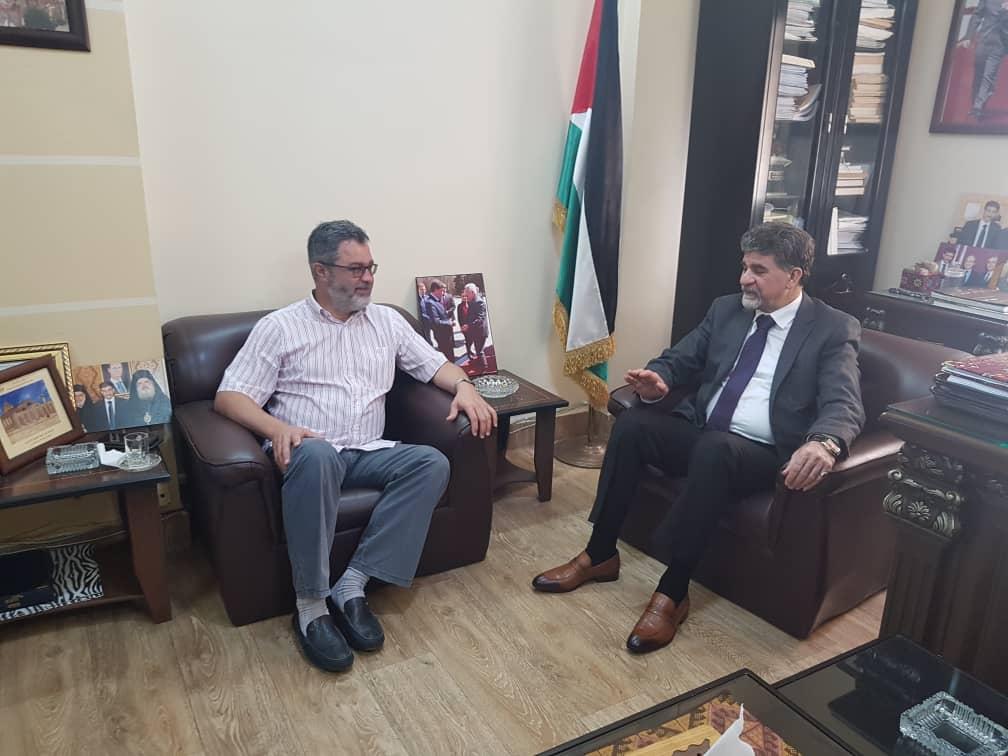 دمشق 12-10-2020 وقا- استقبل مدير عام الدائرة السياسية لمنظمة التحرير الفلسطينية، السفير انور عبد الهادي، اليوم الاثنين، مدير المركز الثقافي الروسي في سوريا نكولاي سوخوف.