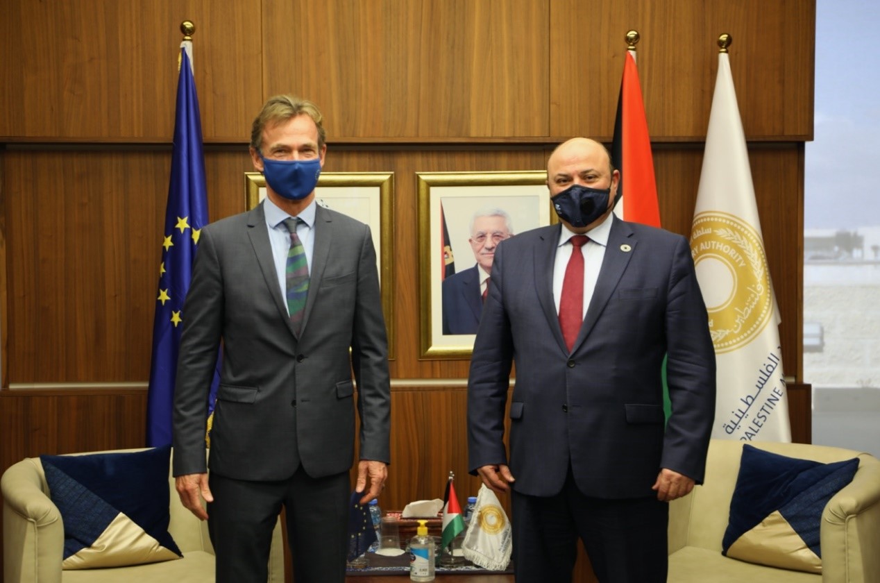 البيرة 21-10-2020 وفا- أطلع محافظ سلطة النقد عزام الشوا، اليوم الأربعاء، ممثل الاتحاد الأوروبي في فلسطين سفين كون فون بورغسدورف على آخر تطورات القطاع المصرفي الفلسطيني، والجهود المبذولة لمواجهة آثار وتداعيات الأزمة الاقتصادية الراهنة الناجمة عن تفشي فيروس كورونا، وعدم استلام أموال المقاصة من الجانب الإسرائيلي.