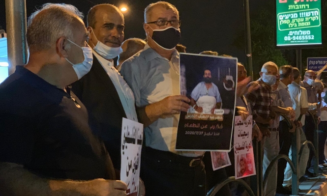 رام الله 27-10-2020 وفا- شارك العشرات من المتظاهرين، مساء اليوم الثلاثاء، أمام مستشفى "كابلان" داخل أراضي عام 48، في وقفة إسناد للأسير ماهر الأخرس، المضرب عن الطعام منذ 93 يوما.