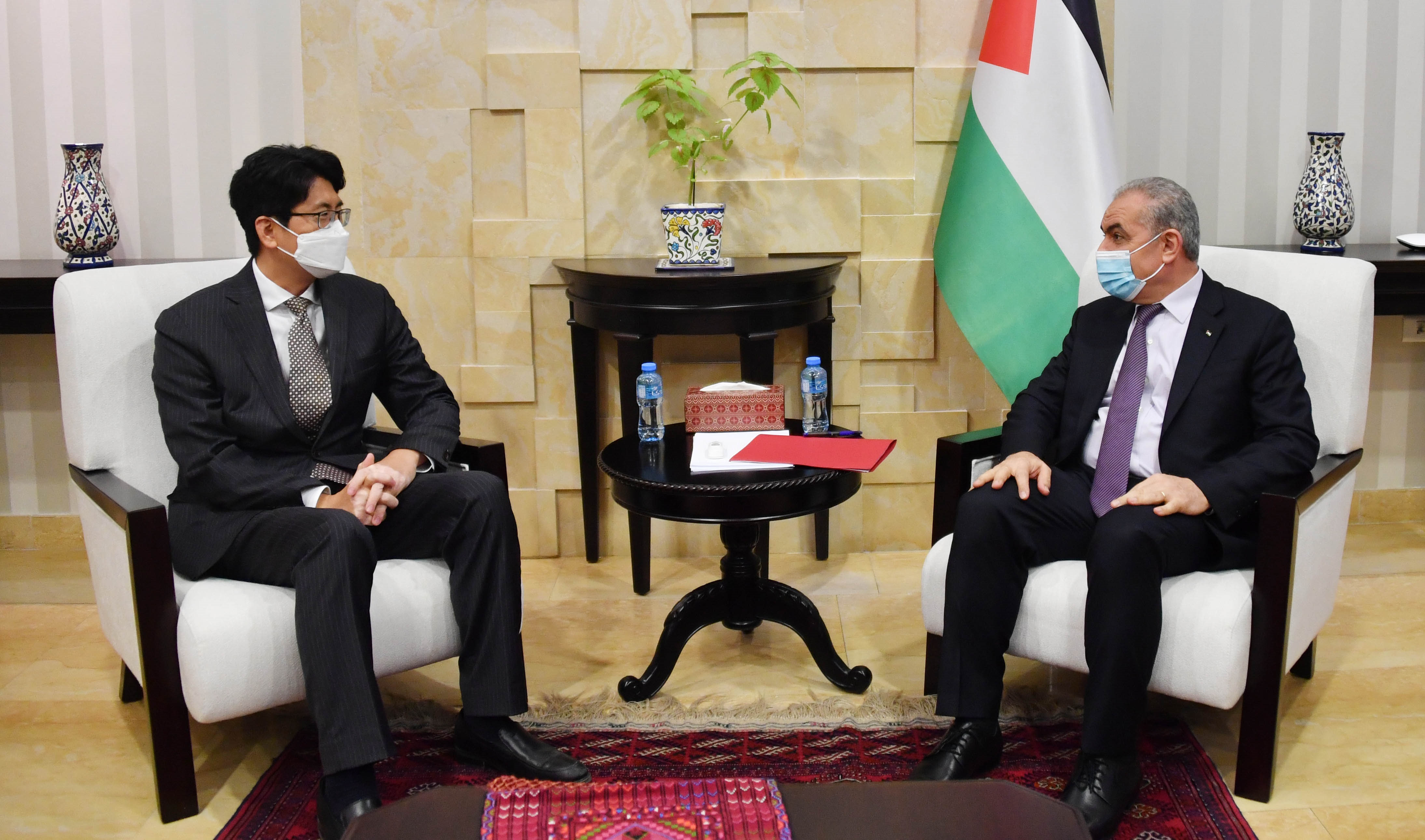 رام الله 28-10-2020 وفا- بحث رئيس الوزراء محمد اشتية، اليوم الأربعاء، مع ممثل جمهورية كوريا الجديد في فلسطين سونغ سي-جينغ، المستجدات السياسية والعلاقات الثنائية بين البلدين.