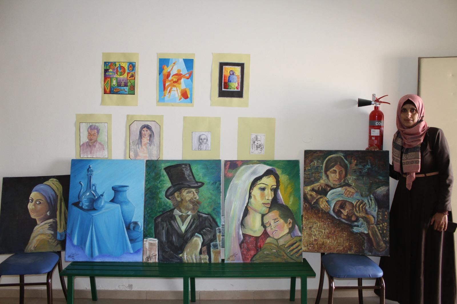 ويضم المعرض لوحات فنية وأعمال رسم من ابداعات الرسامة الهاوية سُكيبة الجبور، وهي إحدى المتطوعات في مركز الكرمل المجتمعي، وربة بيت وناشطة مجتمعية.