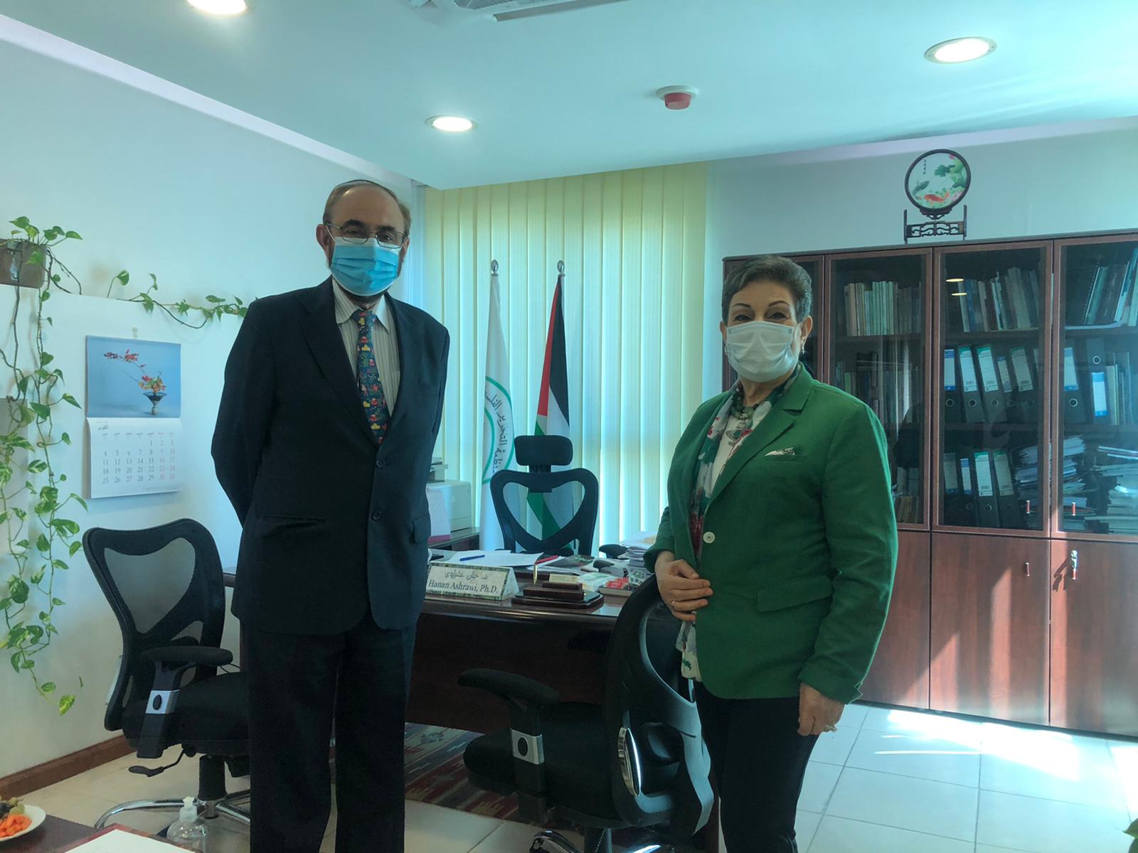رام الله 6-10-2020 وفا- بحثت عضو اللجنة التنفيذية لمنظمة التحرير الفلسطينية حنان عشراوي، اليوم الثلاثاء، مع القنصل الإسباني العام إجناثيو جارثيا- فالديكاساس، آخر المستجدات السياسية في فلسطين والمنطقة، والتطورات على الأرض.