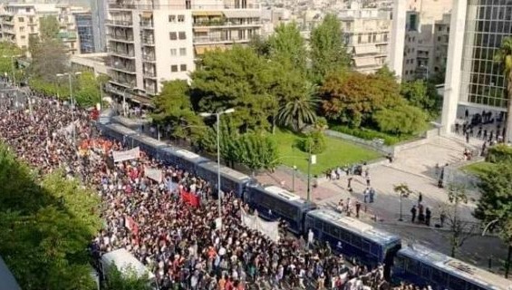 أثينا 7-10-2020 وفا- شهدت العاصمة اليونانية أثينا، اليوم الأربعاء، مظاهرات ضخمة قدرت بمئات الآلاف في شوارعها ومدن يونانية أخرى من مؤيدي كافة الاحزاب السياسية اليونانية.