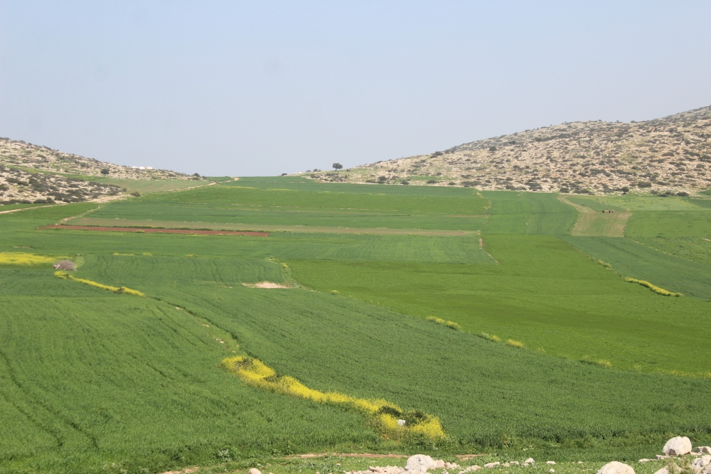 هناك، يمكن مشاهدة خيام المواطنين المتناثرة على سفوح الجبال الواقعة ضمن جغرافيا الخربة، وعدد من المواطنين يرعون مواشيهم في الجبال القريبة.