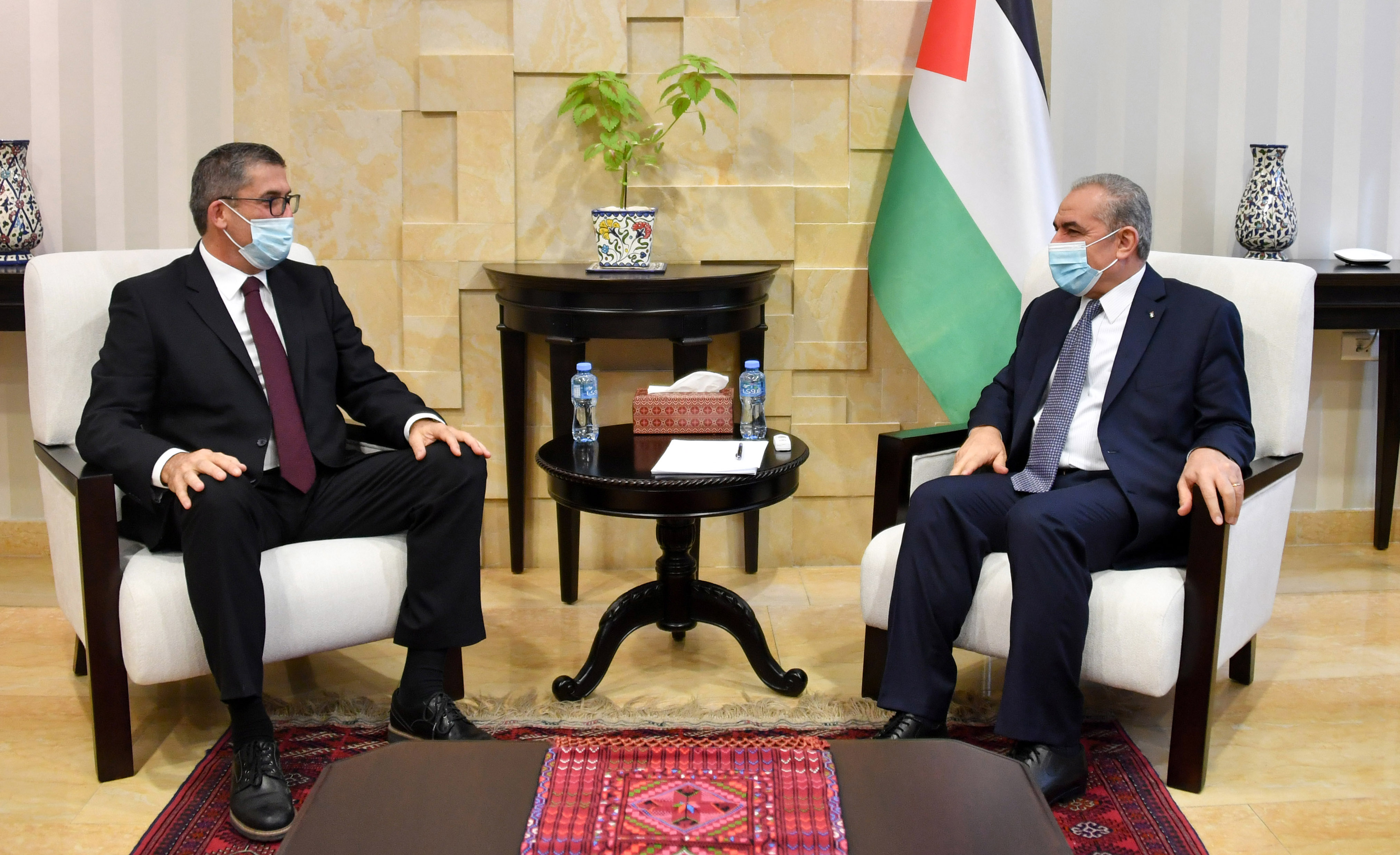 ووضع اشتية ضيفه في صورة جهود إجراء الانتخابات الفلسطينية، قائلا: "ذاهبون للانتخابات كخيار استراتيجي وكل جهودنا مركزة على إنجاحها وتذليل العقبات لتكون بوابة لإنهاء الانقسام، وترتيب بيتنا الداخلي واستعادة الوحدة لنتمكن من الصمود ومواجهة التحديات الخارجية، والرئيس أبو مازن لديه الإرادة الجدية والحقيقة لذلك".
