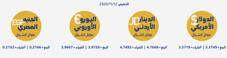 رام الله 12-11-2020 وفا- جاءت أسعار العملات مقابل الشيقل الإسرائيلي، اليوم الخميس، حسب سلطة النقد، على النحو التالي: