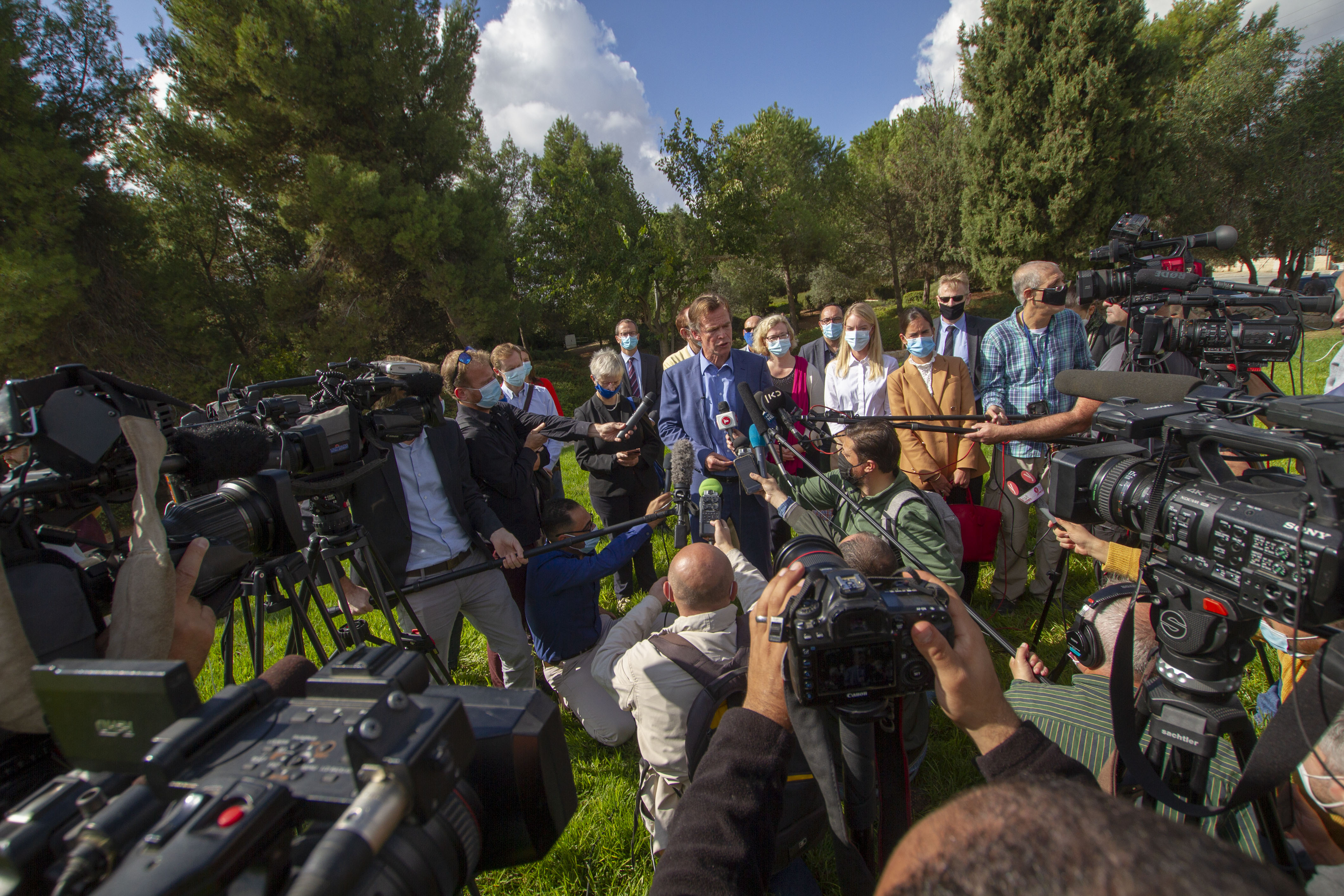 القدس 16-11-2020 وفا- نظم رؤساء بعثات الاتحاد الأوروبي وسفراء وقناصل دول أوروبية "زيارة" احتجاجية الى مستوطنة "جفعات هاماتوس" جنوب القدس المحتلة، رفضا لقرار توسعتها بـ1257 وحدة استيطانية جديدة.