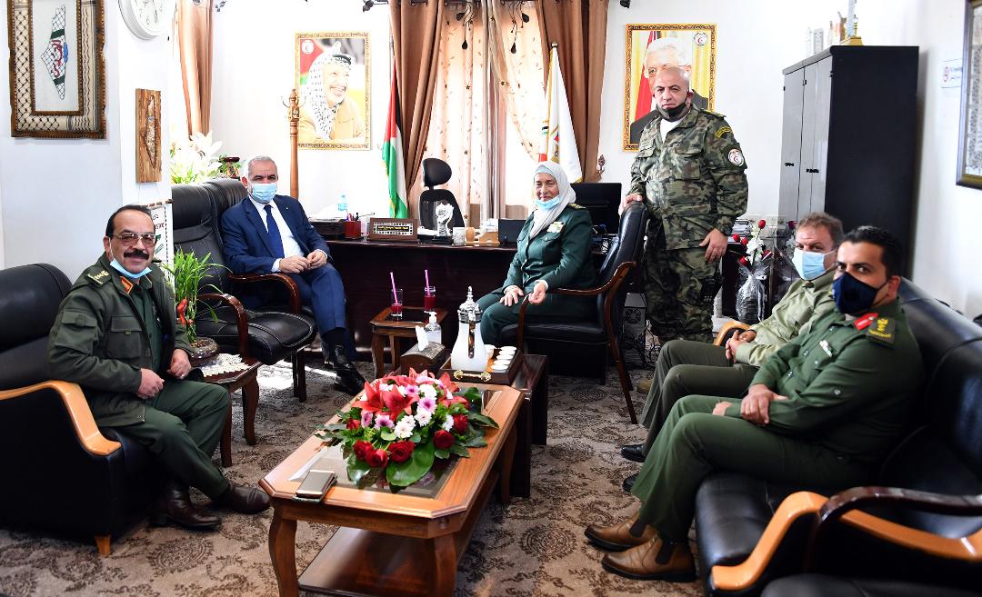 رام الله 17-11-2020 وفا- تفقد رئيس الوزراء محمد اشتية، اليوم الثلاثاء، مقر الخدمات الطبية العسكرية في مدينة البيرة، حيث التقى مدير عام الخدمات اللواء طبيب ميسون البنا، وعدد من المدراء.