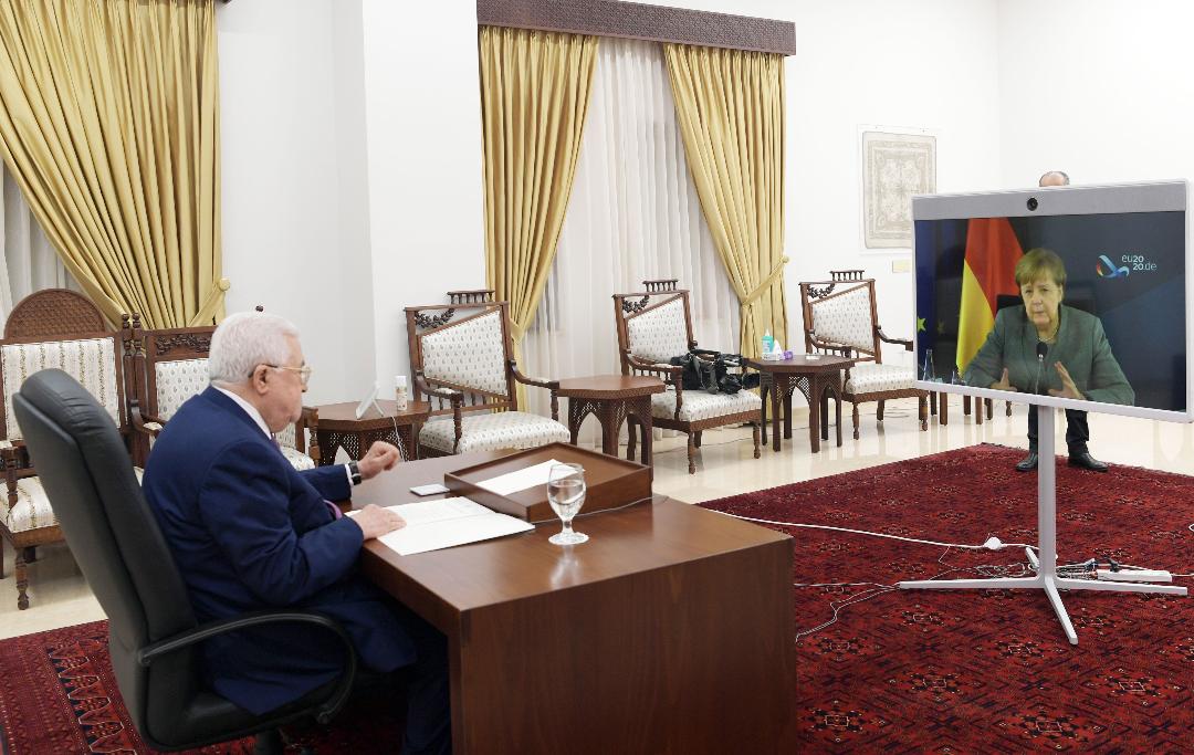 رام الله 23-11-2020 وفا- جرى مساء اليوم الاثنين، اتصال عبر الفيديو كونفرنس، بين رئيس دولة فلسطين محمود عباس، والمستشارة الألمانية أنجيلا ميركل، حيث تم بحث آخر التطورات والمستجدات.