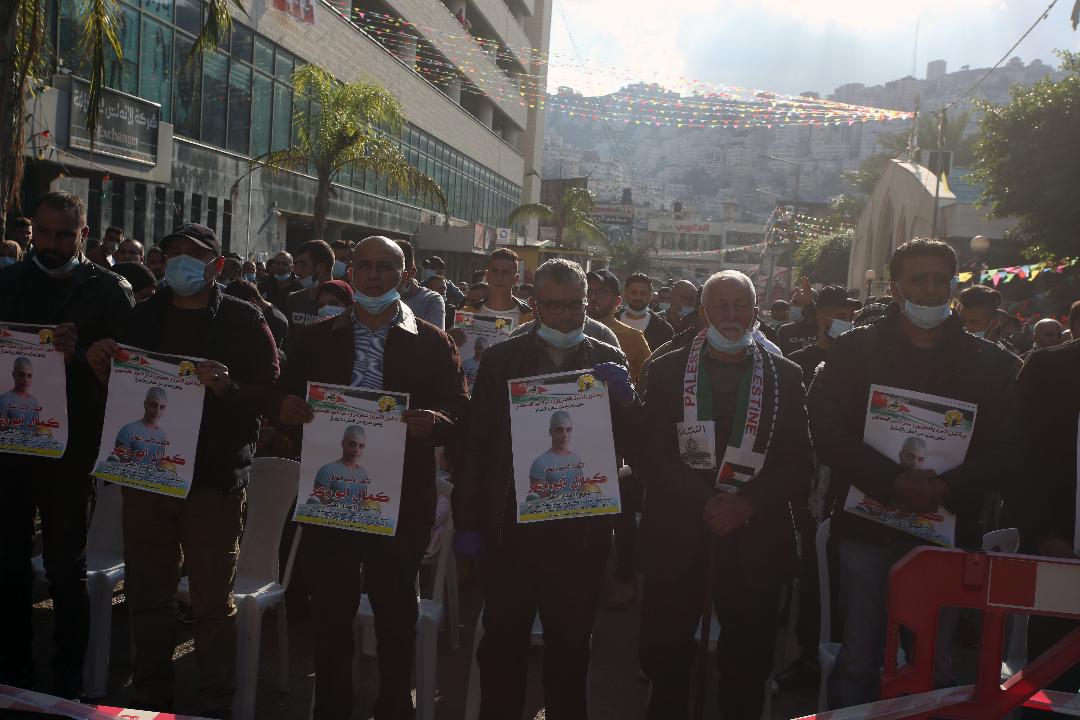 نابلس 23-11-2020 وفا- شارك مئات المواطنين، اليوم الاثنين، في مهرجان العهد والوفاء وتأبين الشهيد الأسير كمال أبو وعر الذي استشهد داخل سجون الاحتلال في العاشر من الشهر الجاري، بدعوة من نادي الأسير وهيئة شؤون الأسرى المحررين والحركة الأسيرة في سجون الاحتلال.