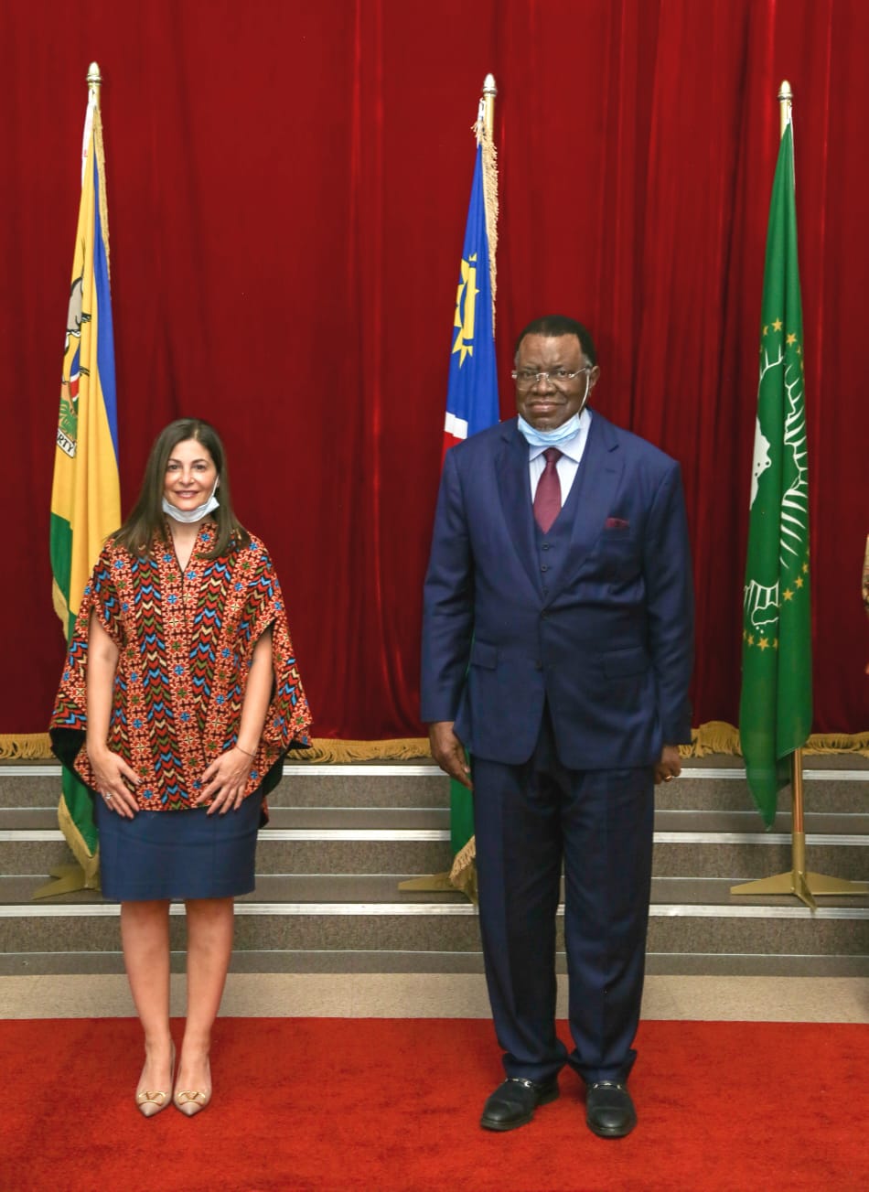 ويندهوك 29-11-2020 وفا- قدمت سفيرة دولة فلسطين لدي جمهورية جنوب أفريقيا حنان جرار، اليوم الأحد، أوراق اعتمادها كسفير غير مقيم لدولة فلسطين لدى جمهورية ناميبيا إلى رئيس الجمهورية هجيبي هانيغوب، في احتفالية رسمية، في القصر الرئاسي في العاصمة ويندهوك.