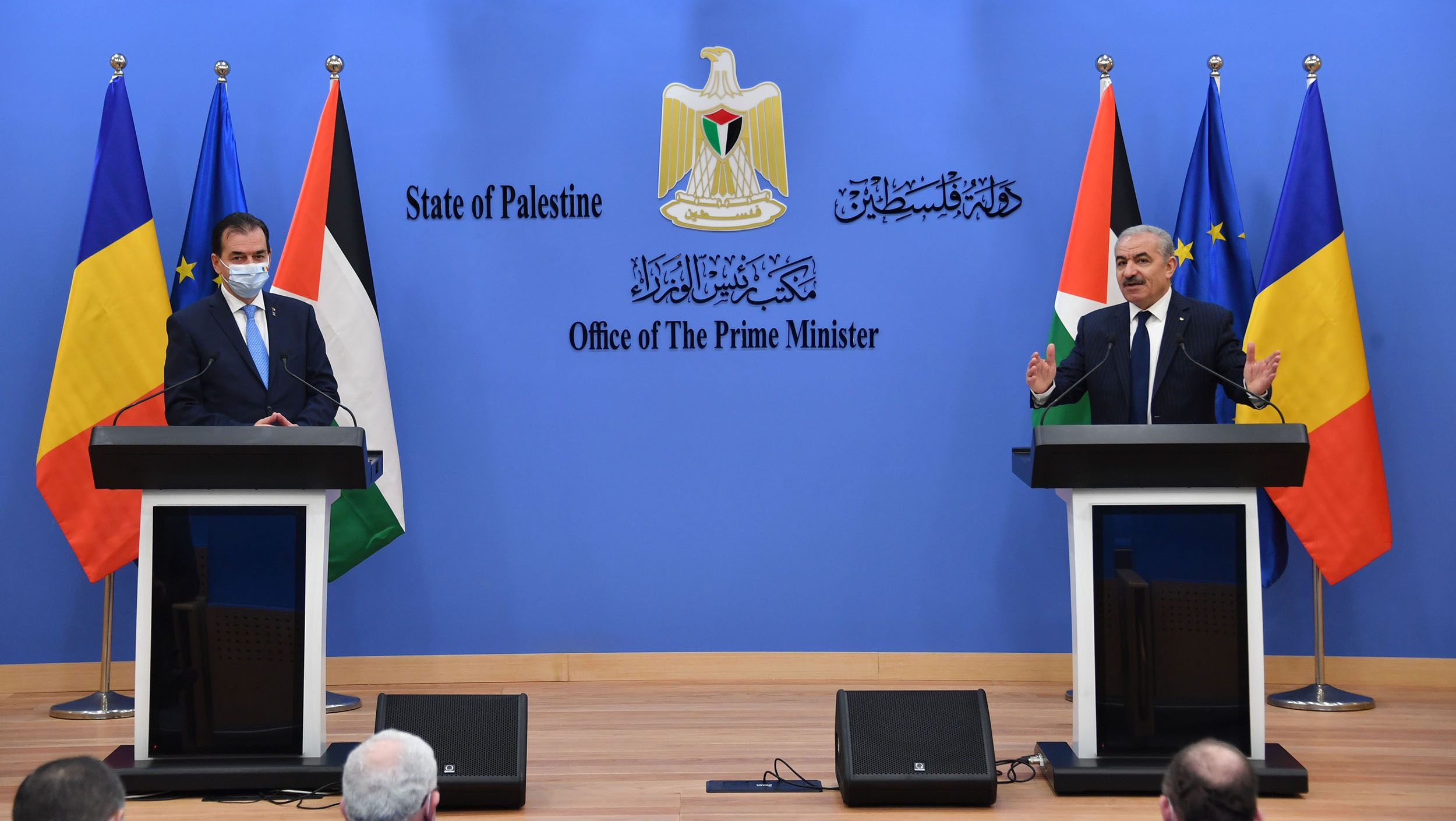 وأضاف: "ناقشنا دور رومانيا في الاتحاد الاوروبي، ونقدر الموقف الروماني والاوروبي فيما يخص حماية القانون الدولي والدعوة إلى حل الدولتين على أساس حدود عام 1967، وإقامة دولة فلسطينية مع القدس عاصمة لها. أوروبا ضامنة وحامية للقانون الدولي والقرارات الأممية، ورومانيا لها دور مهم وحيوي في استمرار هذا".