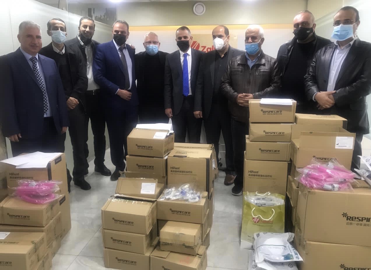 الخليل 13-12-2020 وفا- تحت رعاية محافظ الخليل اللواء جبرين البكري، تسلم مدراء مستشفى الخليل الحكومي، ومستشفى دورا الحكومي، والمستشفى الأهلي، اليوم الأحد، أجهزة تنفس اصطناعي ومعدات طبية، بتبرع من رجال الأعمال المساهمين في صندوق "ازدهار فلسطين".