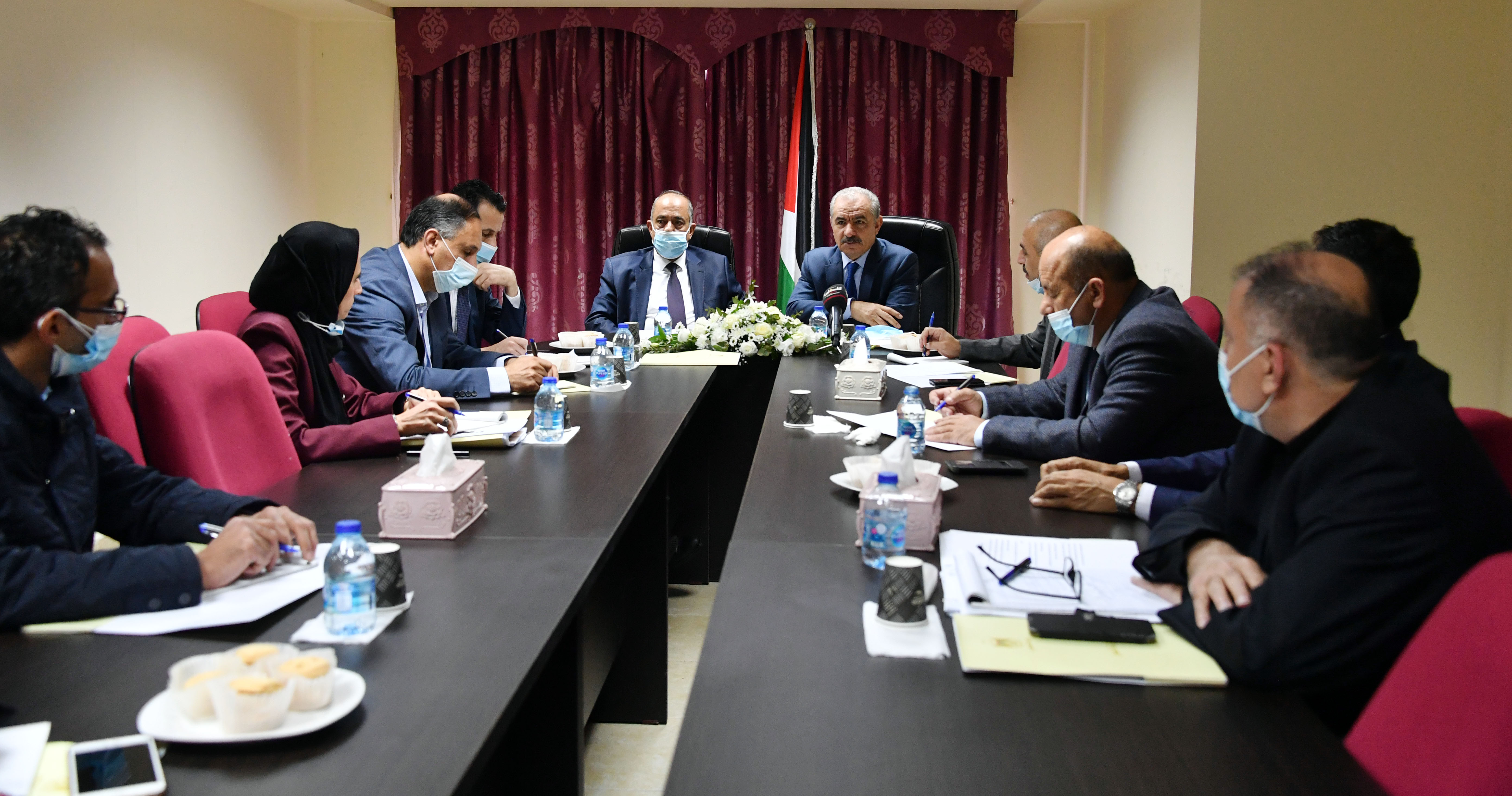 رام الله 15-12-2020 وفا- تفقد رئيس الوزراء محمد اشتية، اليوم الثلاثاء، وزارة العدل بمدينة رام الله، حيث التقى بالوزير محمد شلالدة، والوكلاء المساعدين والمدراء العامين في الوزارة.
