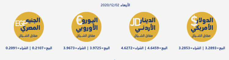 رام الله 2-12-2020 وفا- جاءت أسعار العملات مقابل الشيقل الإسرائيلي، اليوم الأربعاء، حسب سلطة النقد، على النحو التالي: