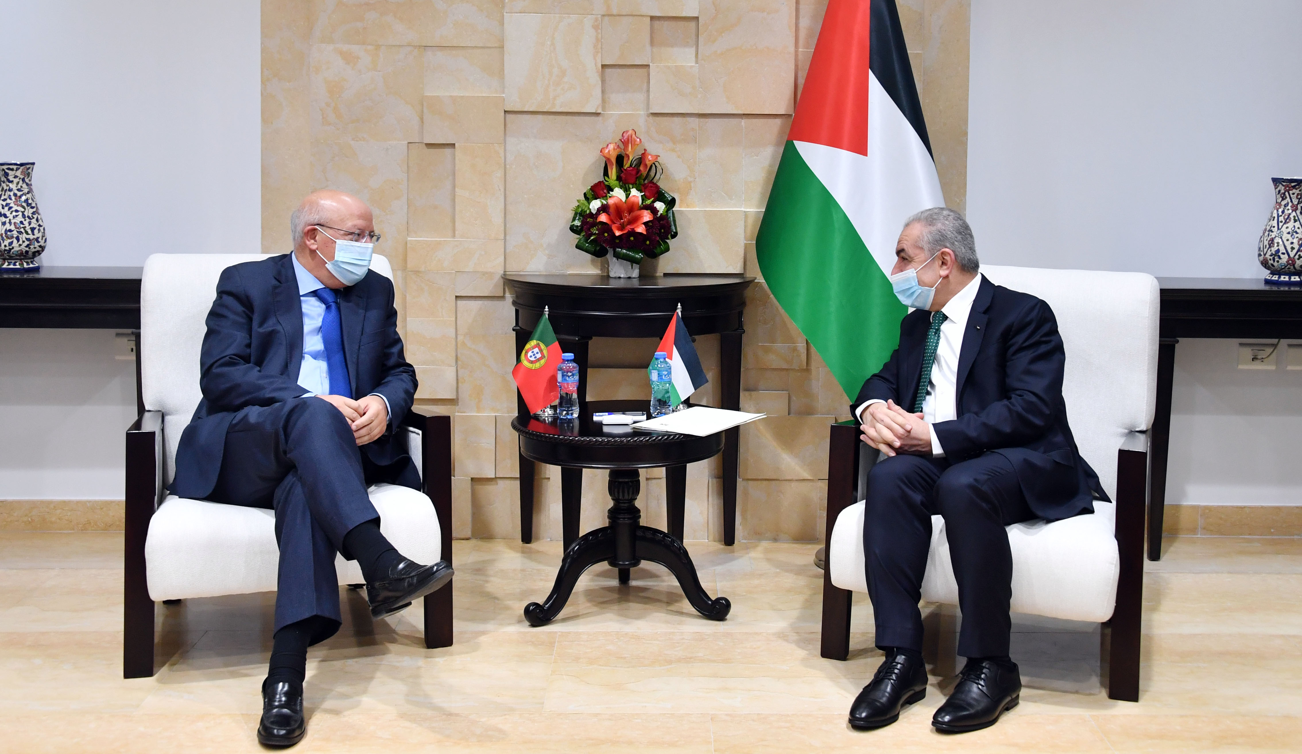 رام الله 22-12-2020 وفا- بحث رئيس الوزراء محمد اشتية، مع نائب رئيس الوزراء وزير خارجية البرتغال اوغستو سانتوس سيلفا، آخر التطورات والمستجدات السياسية.