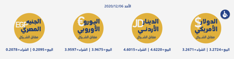 رام الله 6-12-2020 وفا- جاءت أسعار العملات مقابل الشيقل الإسرائيلي، اليوم الأحد، حسب سلطة النقد، على النحو التالي: