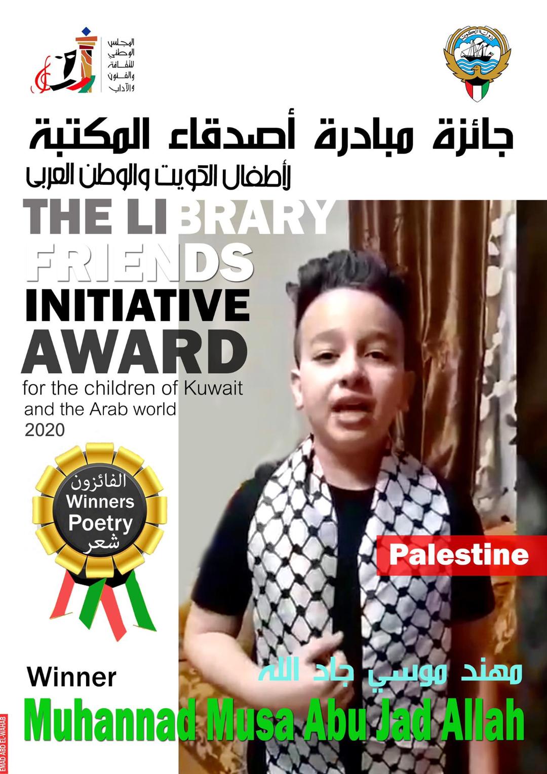 وحصل الطالب الفلسطيني مهند موسى أبو جاد الله، على المرتبة الأولى عن فئة الشعر من عمر (8-11)، وحل في المرتبة الثانية إسراء أحمد زغير من العراق، وفي المرتبة الثالثة زياد بن ناصر المنظري من سلطنة عمان.