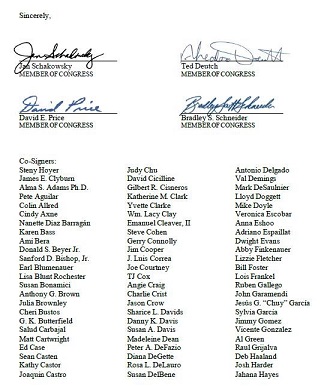 وقاد النواب جان شاكوسكي، وتيد دوتش، وديفيد برايس، وبراد شنايدر 185 من زملائهم الديمقراطيين في مجلس النواب في التوقيع على رسالة إلى الحكومة الإسرائيلية تعبر عن قلقهم من هذه الخطوة.