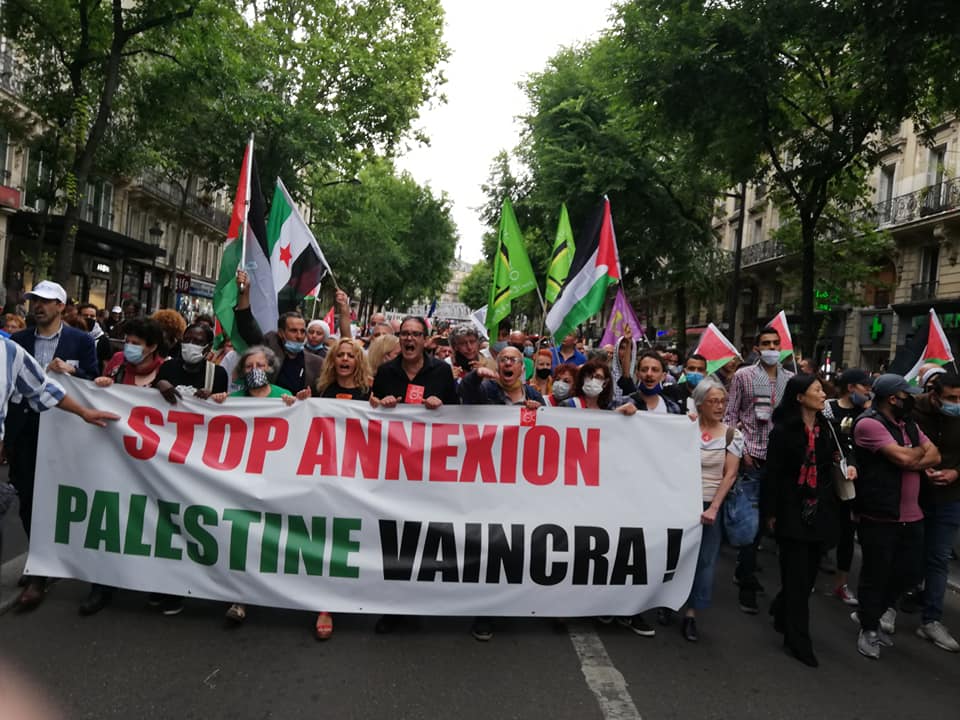 باريس 27-6-2020 وفا- شهدت عدة مدن فرنسية أبرزها العاصمة باريس، اليوم السبت، مظاهرات للتنديد بالخطة الإسرائيلية لضم أراض فلسطينية، والمزمع تنفيذها خلال الأيام القليلة القادمة.