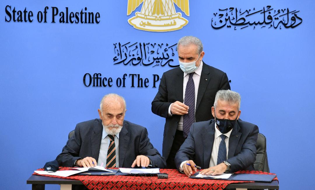 رام الله 1-7-2020 وفا- تحت رعاية وحضور رئيس الوزراء محمد اشتية، وقعت وزارة الحكم المحلي ممثلة بوزيرها مجدي الصالح، ومؤسسة منيب وانجلا المصري ممثلة برجل الأعمال منيب المصري، اليوم الأربعاء في مكتب رئيس الوزراء بمدينة رام الله، مذكرة تفاهم لاستكمال إعداد المخطط الوطني التنموي المكاني.