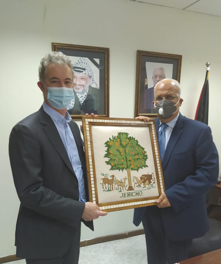 وقدم عريقات للسفير كونلن تذكارا (شجرة الحياة) من قصر هشام بن عبد الملك في أقدم المدن مبنى (أريحا) والأقرب إلى أكثر المدن معنى (القدس)، وتمنى له التوفيق في مهامه الجديدة.
