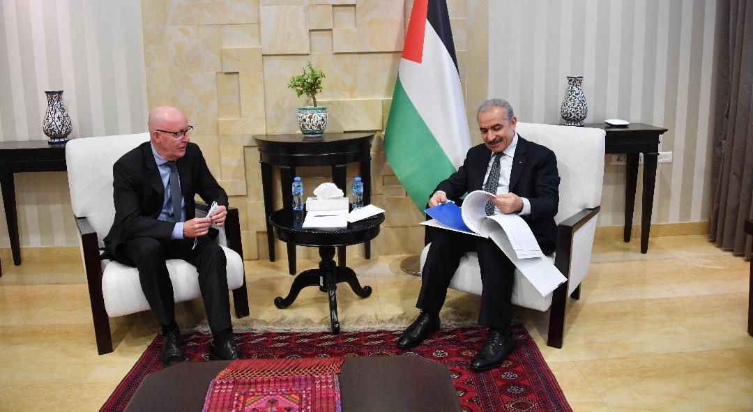 رام الله 25-8-2020 وفا- أطلق رئيس الوزراء محمد اشتية، والمنسق الخاص للأمم المتحدة (UNSCO) جيمي ماكجولدريك، اليوم الثلاثاء، في رام الله، أطلس التنمية المستدامة، الذي تم إعداده بمبادرة من رئيس الوزراء من قبل فريق عمل الأمم المتحدة في فلسطين والحكومة الفلسطينية.