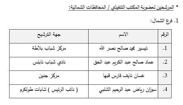 القدس 26-8-2020 وفا- أعلنت الأمانة العامة بالاتحاد الفلسطيني لكرة القدم، اليوم الأربعاء، عن قائمة أسماء مرشحي المكتب التنفيذي للاتحاد الوطني، بعد تسلمها قائمة المرشحين من قبل لجنة الحوكمة والانتخابات، حيث قرر الاتحاد عقد اجتماع جمعيته العمومية العادي (التاسع)، يوم الجمعة الموافق 11.09.2020.